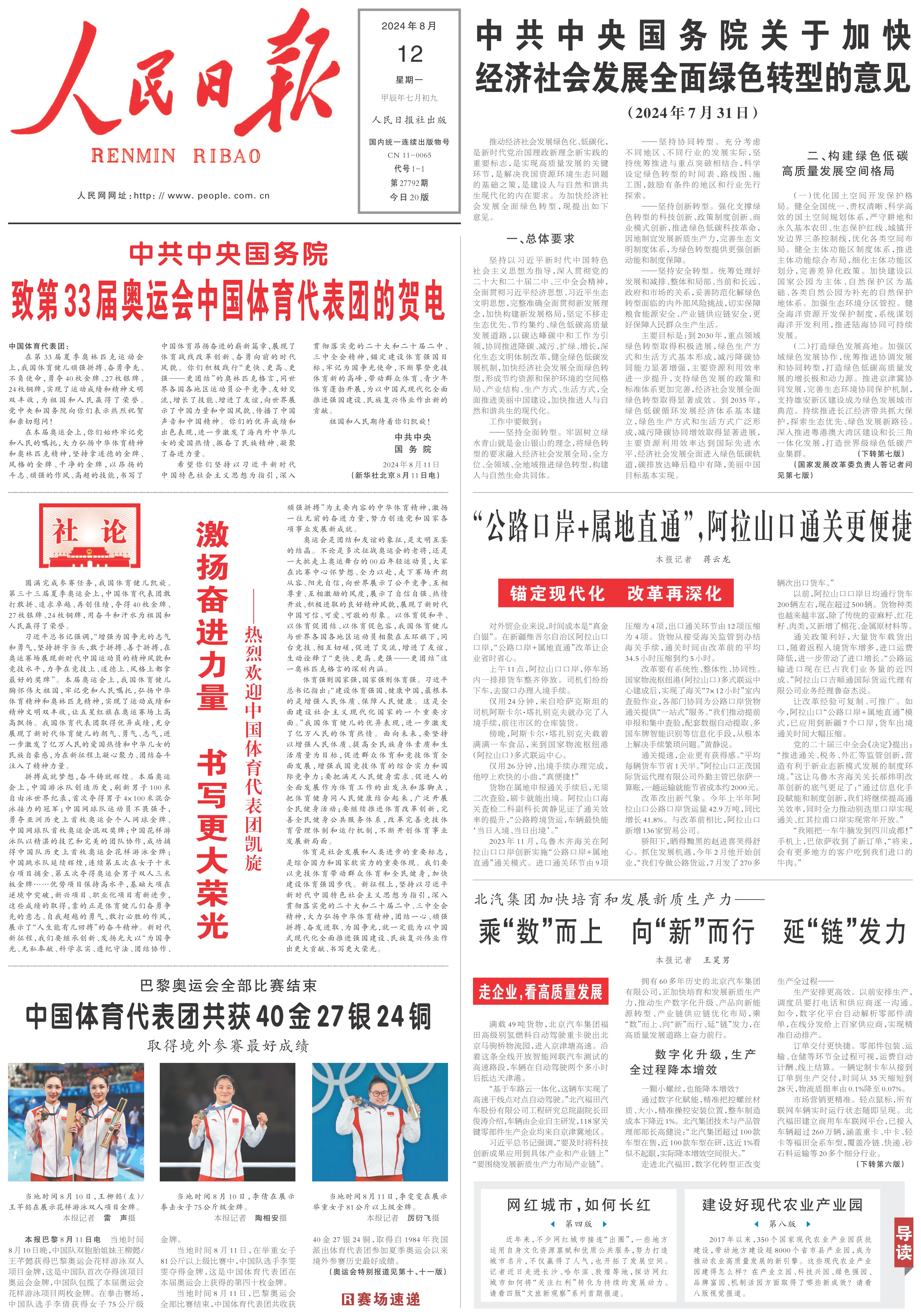 《 人民日?qǐng)?bào) 》( 2024年08月12日 01 版)