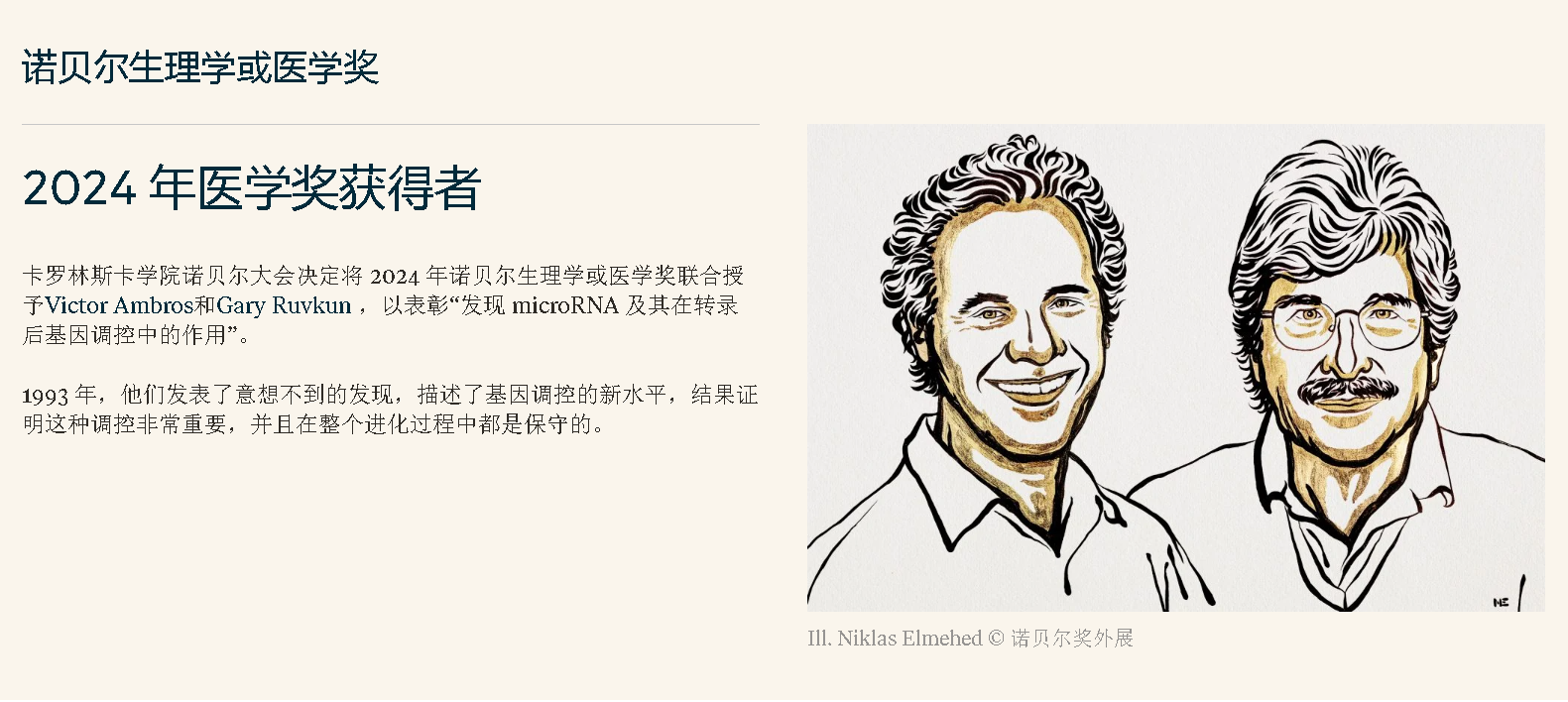 諾貝爾生理學或醫(yī)學獎 2024 年醫(yī)學獎獲得者公布