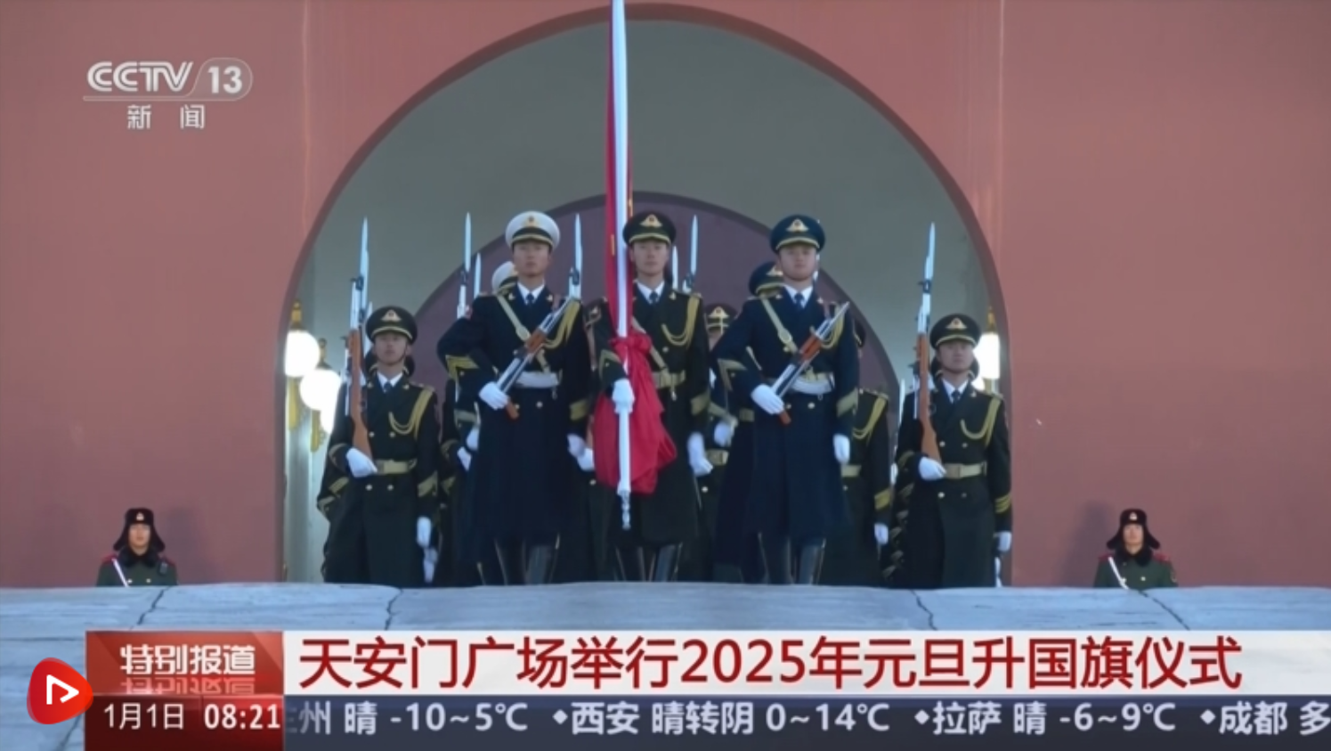 央視網(wǎng)消息:揮別2024,迎接2025第一縷陽光。新年第一天,全國各地的群眾來到首都北京的天安門廣場,觀看莊嚴(yán)隆重的升國旗儀式,共祝新年好、祖國好。記者也用鏡頭記錄了2025年第一次天安門廣場升國旗儀式。