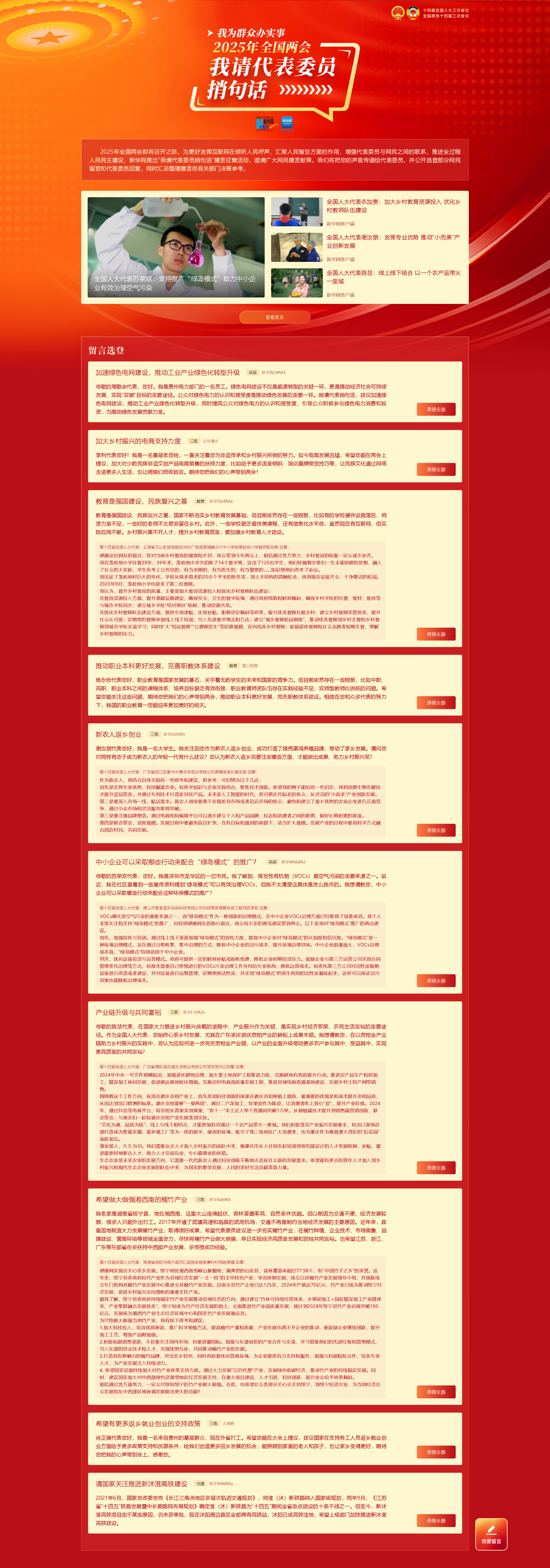 2025年全國兩會(huì)即將召開之際,為更好發(fā)揮互聯(lián)網(wǎng)在傾聽人民呼聲、匯聚人民智慧方面的作用,增強(qiáng)代表委員與網(wǎng)民之間的聯(lián)系,推進(jìn)全過程人民民主建設(shè),新華網(wǎng)推出“我請(qǐng)代表委員捎句話”建言征集活動(dòng),邀請(qǐng)廣大網(wǎng)民建言獻(xiàn)策。我們將把您的聲音傳遞給代表委員,并公開選登部分網(wǎng)民留言和代表委員回復(fù),同時(shí)匯總整理建言供有關(guān)部門決策參考。