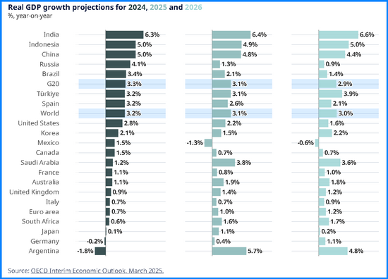 新華社巴黎3月17日電(記者李文昕)經濟合作與發(fā)展組織(經合組織)17日發(fā)布中期經濟展望報告,預計2025年和2026年全球經濟將增長3.1%和3.0%,較去年12月的預測值分別下調0.2和0.3個百分點。