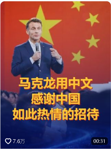 馬克龍說,法中同為聯(lián)合國安理會常任理事國,肩負(fù)著特殊使命。從兩國經(jīng)驗來看,只要雙方在相互尊重、相互理解的基礎(chǔ)上開展合作,就能超越國界與地域,以共同的責(zé)任感推進(jìn)和平、繁榮以及氣候議程。