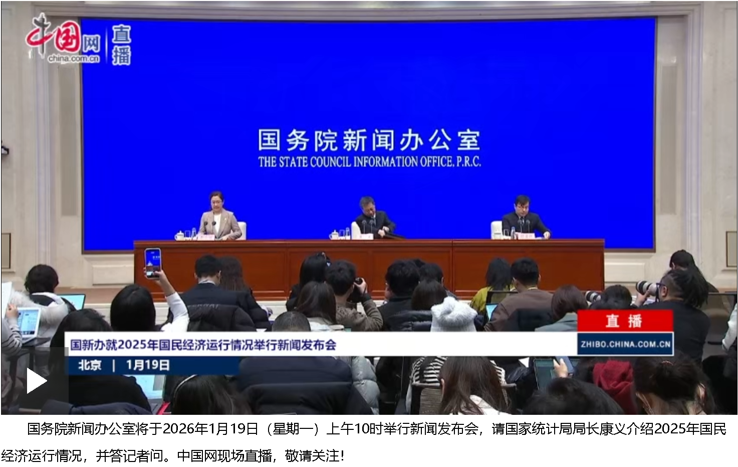 各位媒體朋友,大家上午好!很高興參加國務院新聞辦公室新聞發(fā)布會,感謝各位媒體朋友長期以來對統(tǒng)計工作的大力支持。今天,又到了一年一度發(fā)布全年經(jīng)濟數(shù)據(jù)的時候,大家都很關心過去一年我國經(jīng)濟社會發(fā)展情況。下面,我先向大家通報2025年國民經(jīng)濟運行有關數(shù)據(jù),然后再回答大家關心的問題。