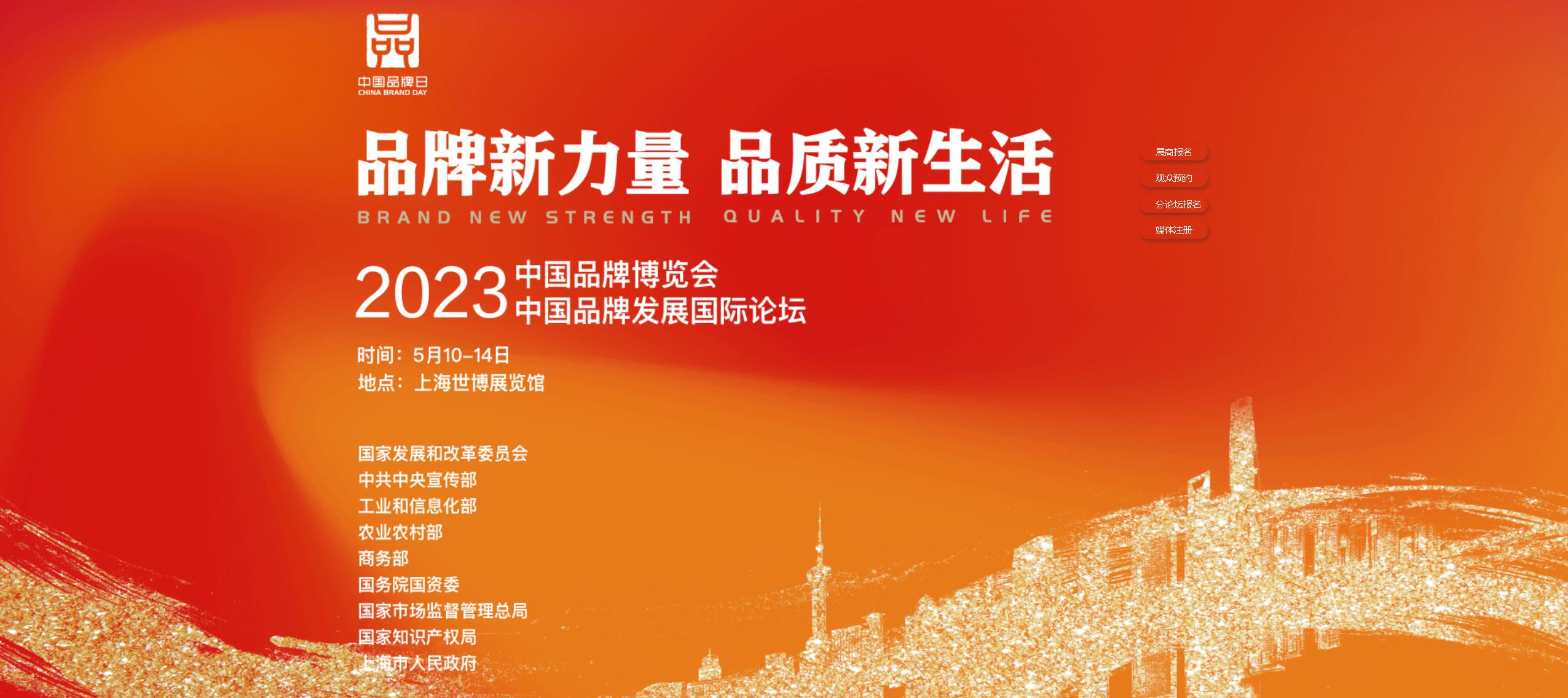 2023年中國品牌日活動由國家發(fā)展改革委聯(lián)合中宣部、工業(yè)和信息化部、農(nóng)業(yè)農(nóng)村部、商務(wù)部、國資委、市場監(jiān)管總局、國家知識產(chǎn)權(quán)局和上海市人民政府共同舉辦,主題是“中國品牌,世界共享;品牌新力量,品質(zhì)新生活”。
