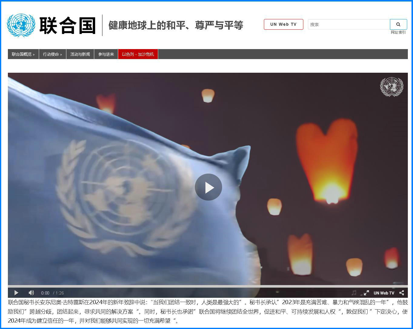 辭舊迎新之際,聯(lián)合國秘書長古特雷斯發(fā)表新年致辭,呼吁全球團結(jié)起來,使2024年成為“建立信任和重燃希望”的一年。