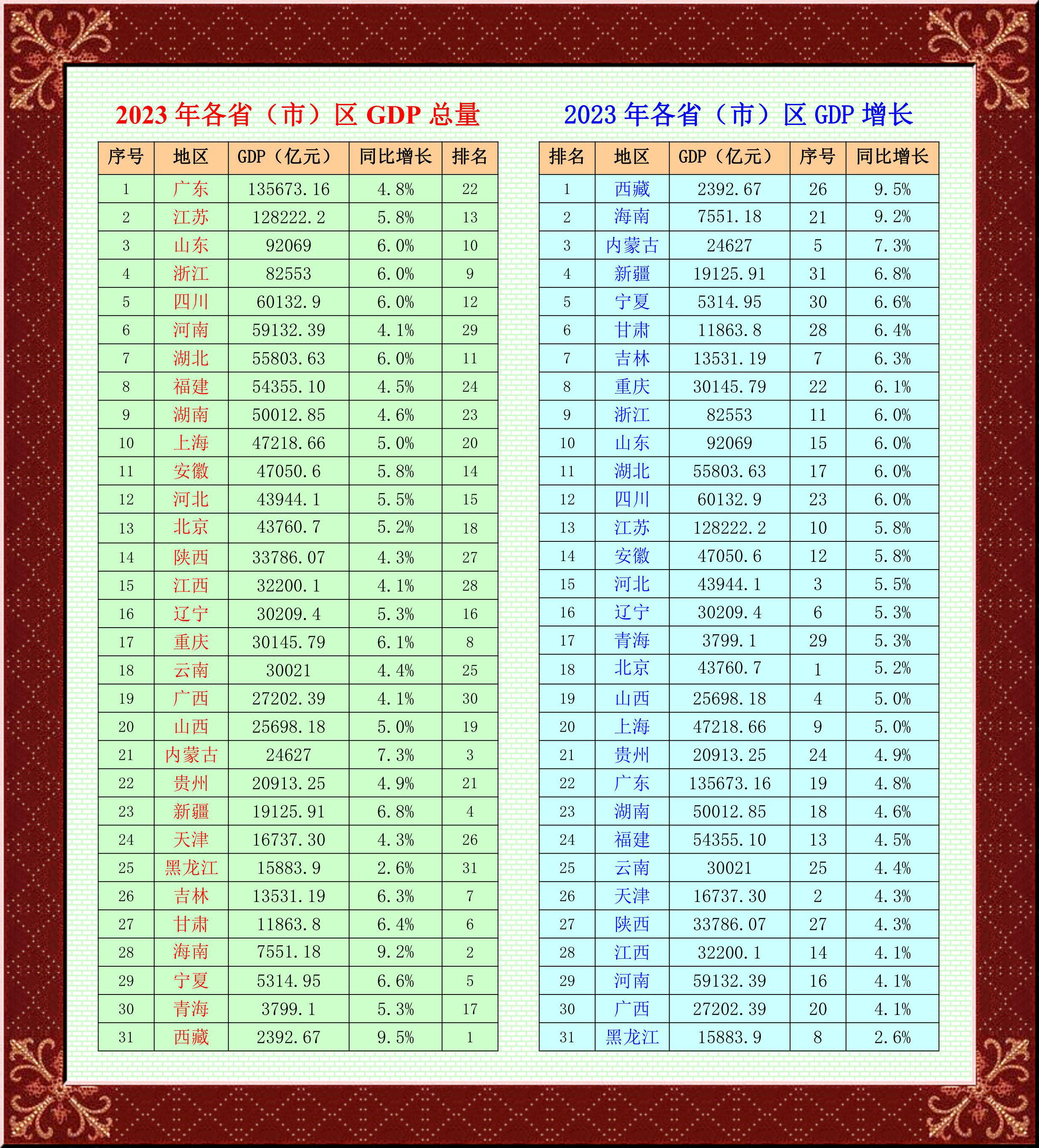 各省份2023年GDP全部實(shí)現(xiàn)正增長,增速多位于4%至6%區(qū)間——