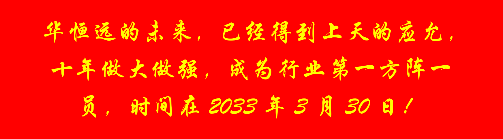 華恒遠(yuǎn)的未來,已經(jīng)得到上天的應(yīng)允,十年做大做強(qiáng),成為行業(yè)第一方陣一員,時(shí)間在2033年3月30日!