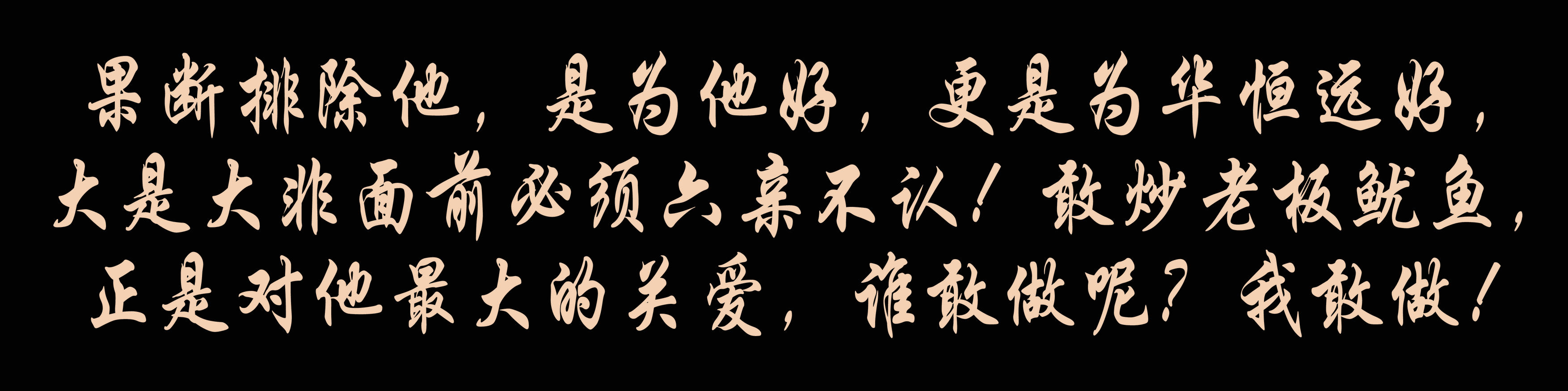 機遇的到來,就是一瞬之間,稍縱即逝,大事一定要當真,不可含含糊糊!千萬不敢像我批評的那個人一樣,糊里糊涂,自以為是,栽了多少跟頭都不長一點記性!果斷排除他,是為他好,更是為華恒遠好,大是大非面前必須六親不認!敢炒老板魷魚,正是對他最大的關(guān)愛,誰敢做呢?我敢做!