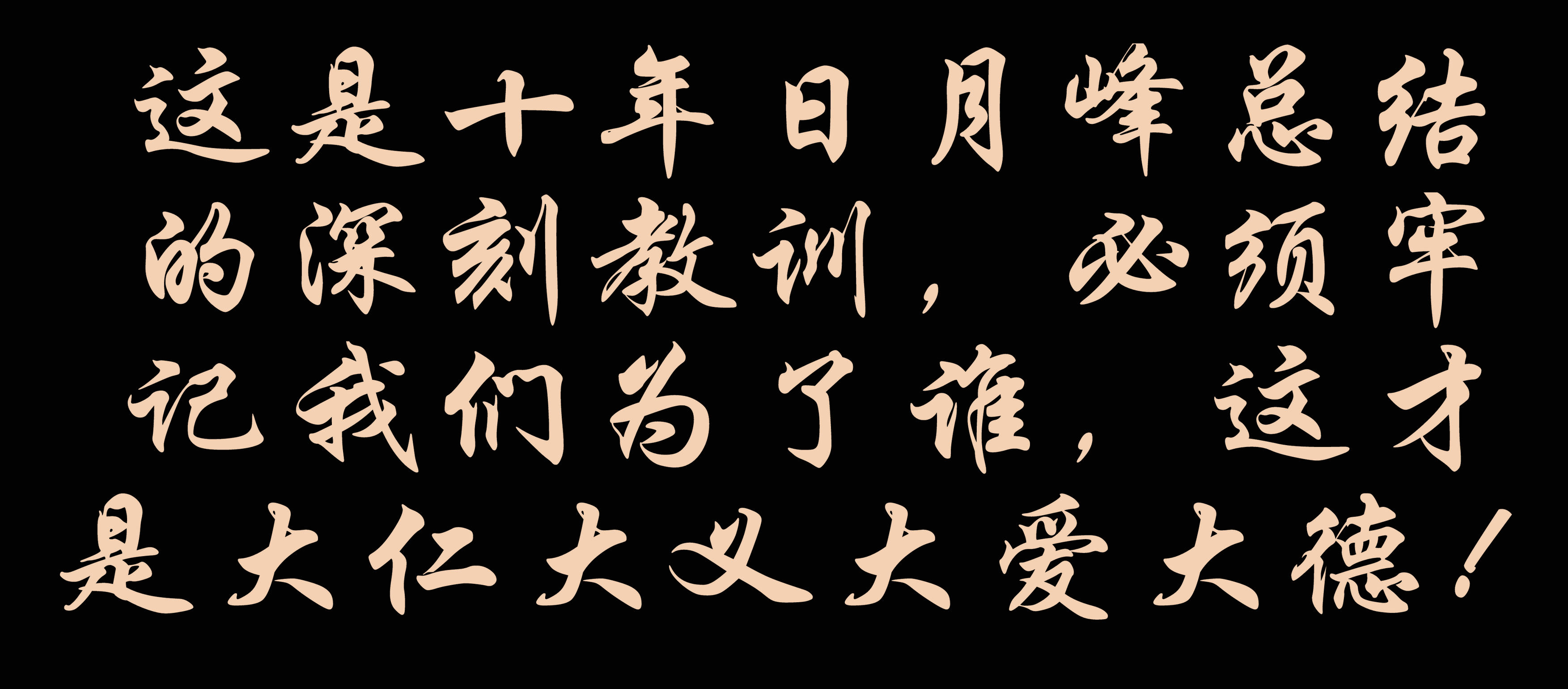 這是十年日月峰總結(jié)的深刻教訓,必須牢記我們?yōu)榱苏l,這才是大仁大義大愛大德!