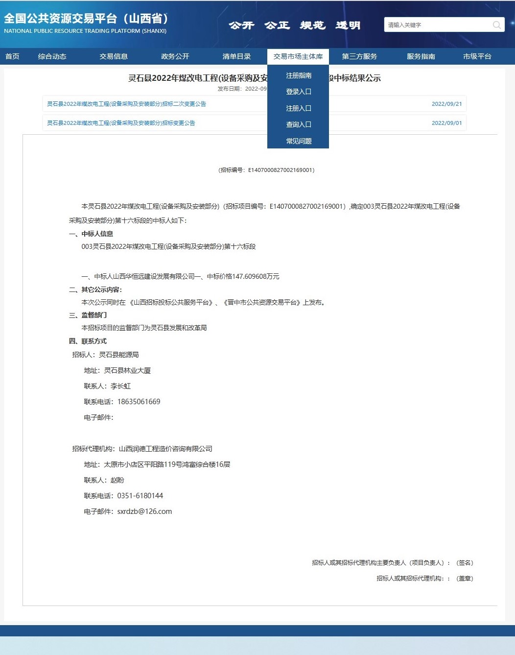 靈石縣2022年煤改電工程(設備采購及安裝部分)第十六標段