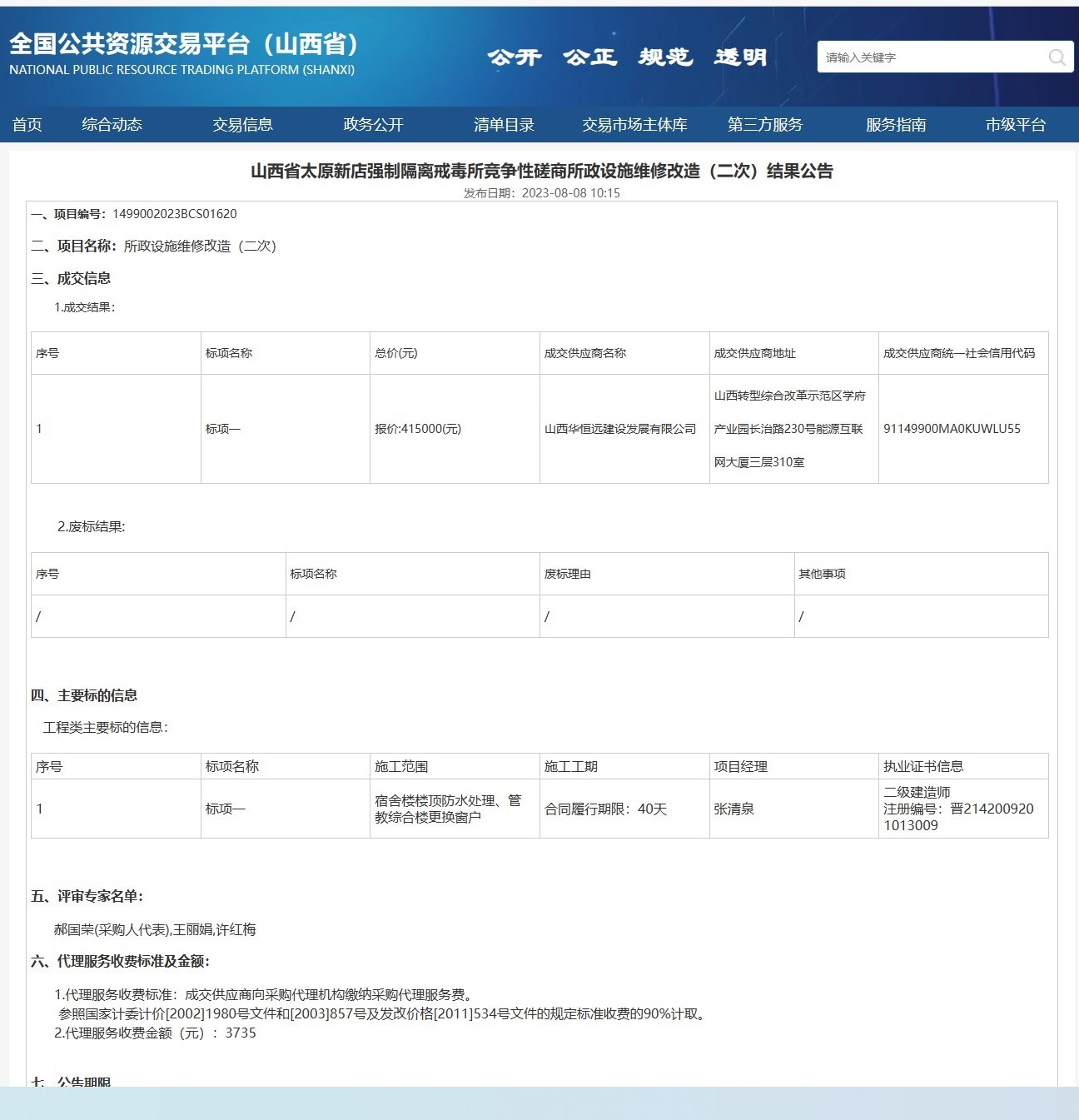 山西省太原新店強制隔離戒毒所競爭性磋商所政設(shè)施維修改造(二次)