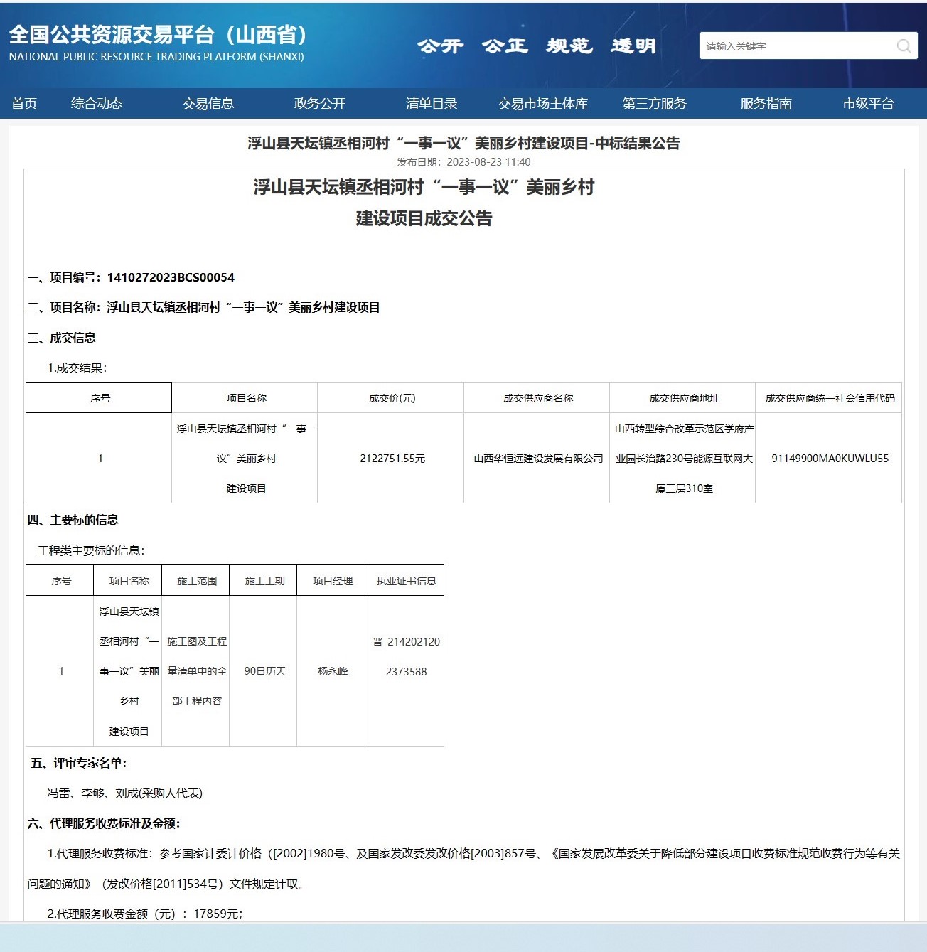 浮山縣天壇鎮(zhèn)丞相河村“一事一議”美麗鄉(xiāng)村建設(shè)項目