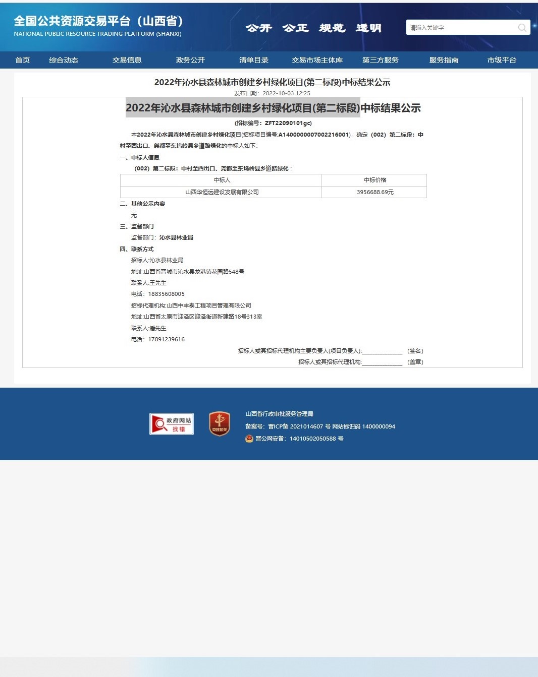 2022年沁水縣森林城市創(chuàng)建鄉(xiāng)村綠化項(xiàng)目(第二標(biāo)段)