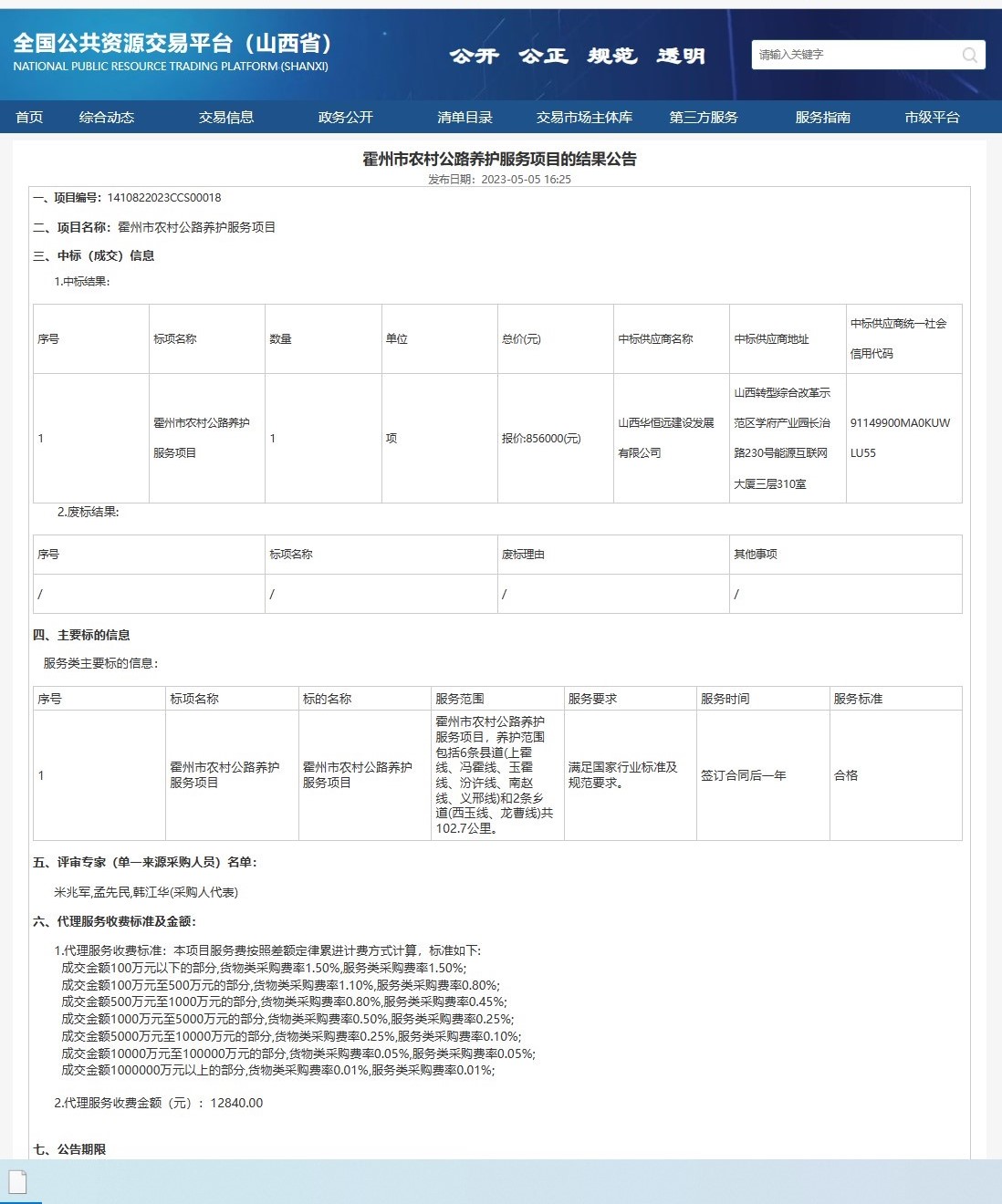 霍州市農(nóng)村公路養(yǎng)護(hù)服務(wù)項(xiàng)目