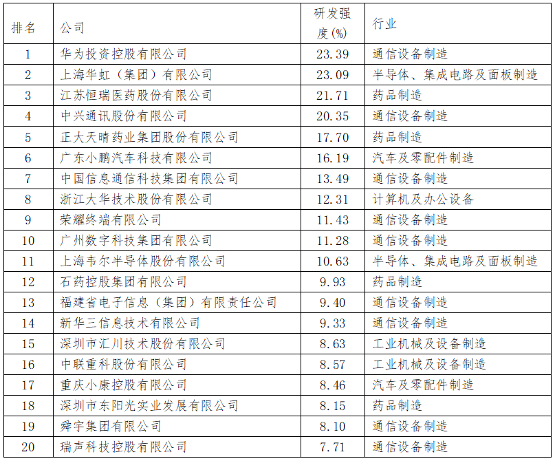 哪些企業(yè)的研發(fā)強(qiáng)度最高?