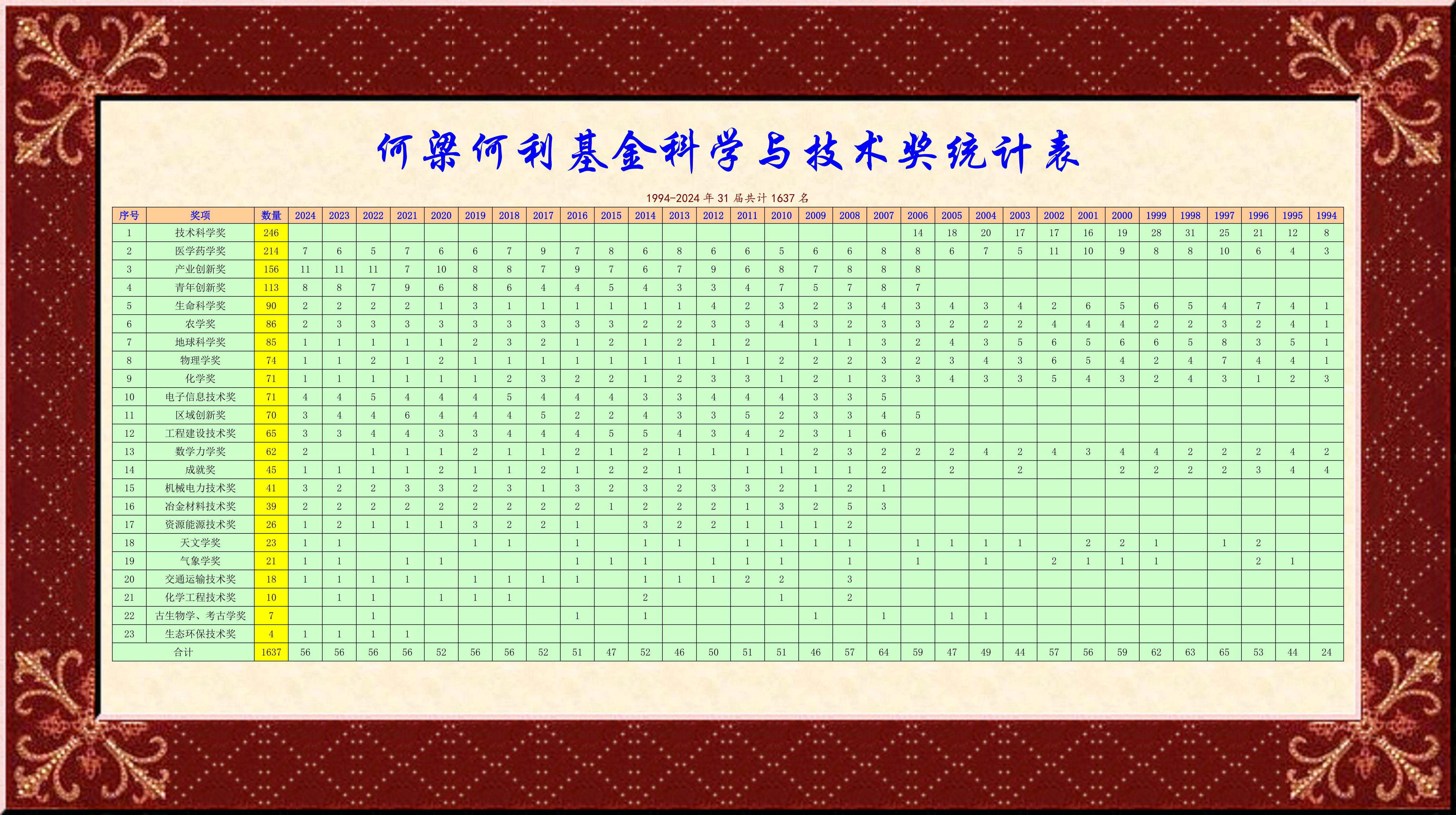 何梁何利基金由香港愛國金融家何善衡、梁銶琚、何添、利國偉于1994年創(chuàng)立,旨在獎勵中國杰出科學家,服務于國家現(xiàn)代化建設。今年是何梁何利基金成立30周年,30年來共獎勵了1638位科技工作者。
