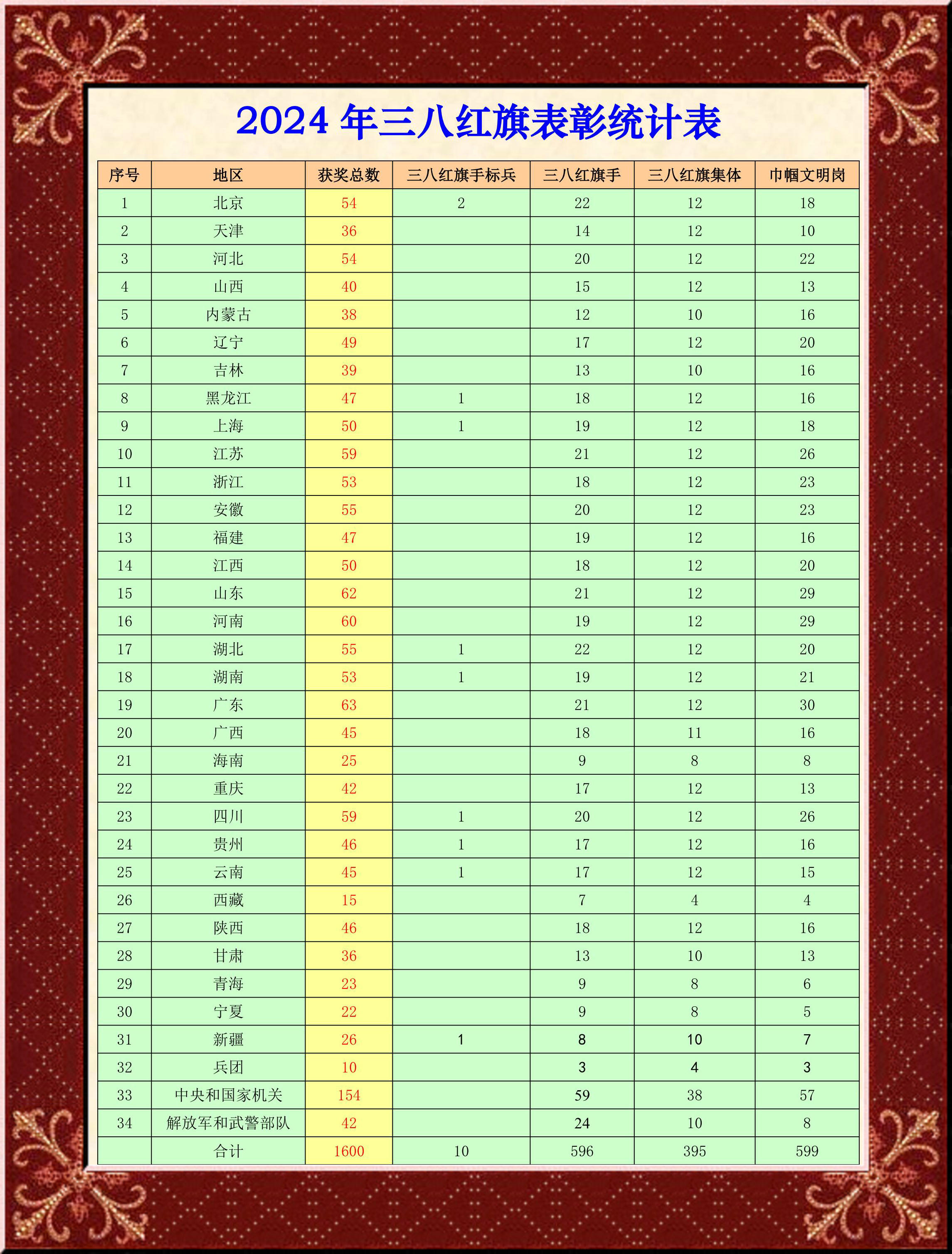 【行業(yè)資料】1989—2024全國(guó)三八紅旗手標(biāo)兵、全國(guó)三八紅旗手、全國(guó)三八紅旗集體名單