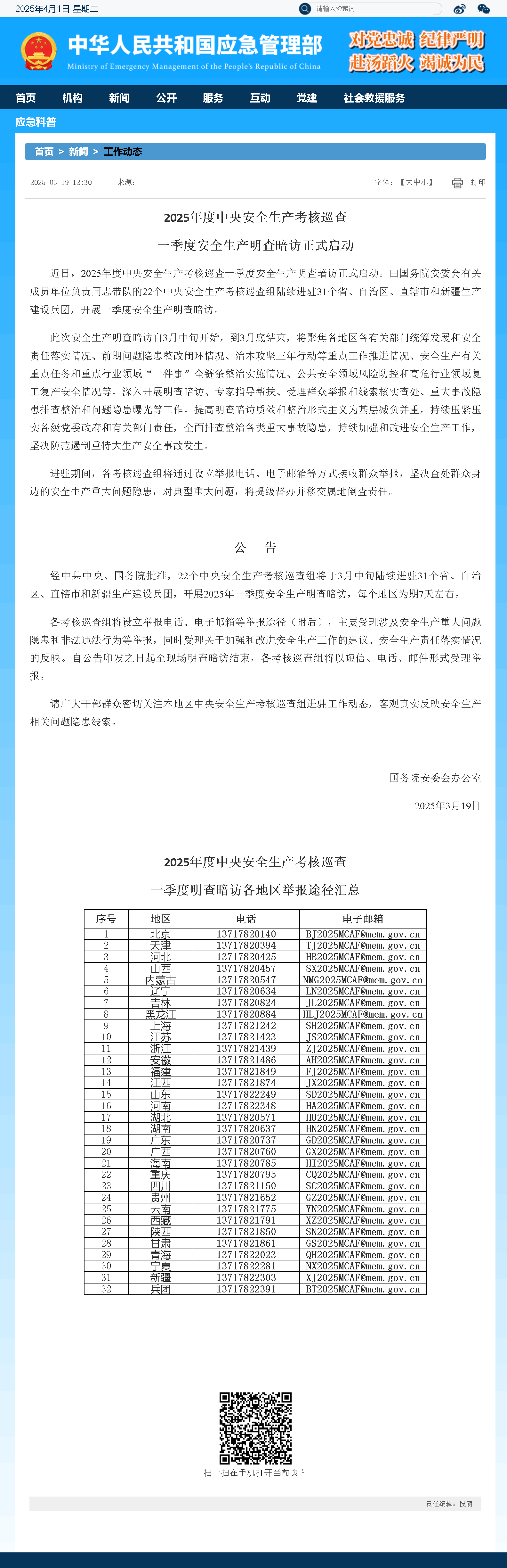 近日,2025年度中央安全生產(chǎn)考核巡查一季度安全生產(chǎn)明查暗訪正式啟動。由國務(wù)院安委會有關(guān)成員單位負(fù)責(zé)同志帶隊(duì)的22個中央安全生產(chǎn)考核巡查組陸續(xù)進(jìn)駐31個省、自治區(qū)、直轄市和新疆生產(chǎn)建設(shè)兵團(tuán),開展一季度安全生產(chǎn)明查暗訪。