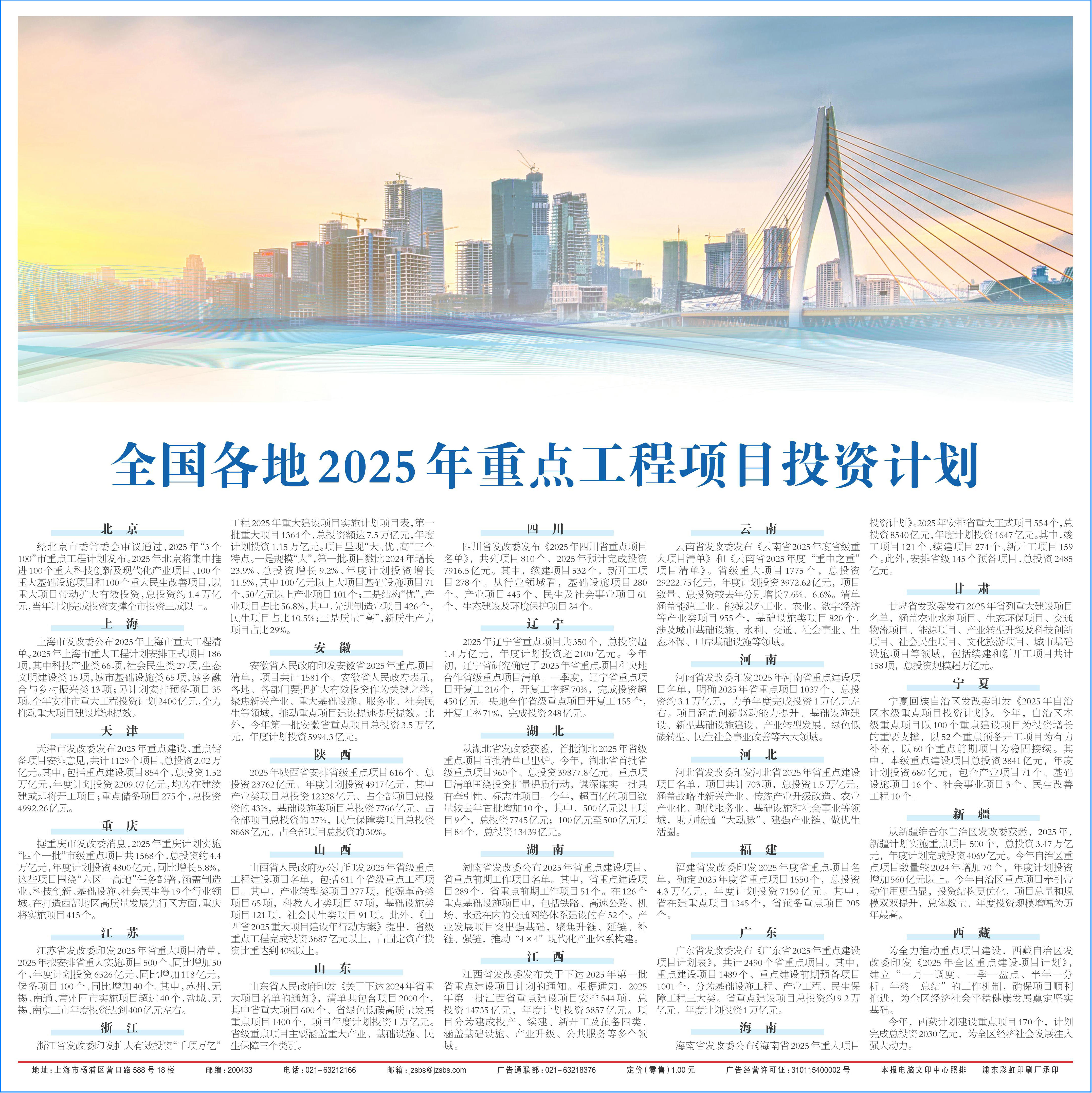 經北京市委常委會審議通過,2025年“3個100”市重點工程計劃發(fā)布。2025年北京將集中推進100個重大科技創(chuàng)新及現(xiàn)代化產業(yè)項目、100個重大基礎設施項目和100個重大民生改善項目,以重大項目帶動擴大有效投資,總投資約1.4萬億元,當年計劃完成投資支撐全市投資三成以上。