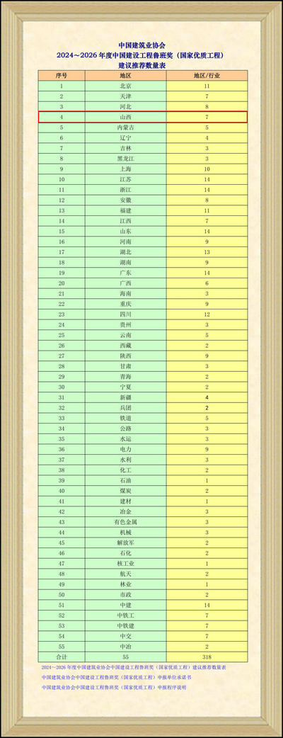 附件:1、2024~2026年度中國建筑業(yè)協會中國建設工程魯班獎(國家優(yōu)質工程)建議推薦數量表