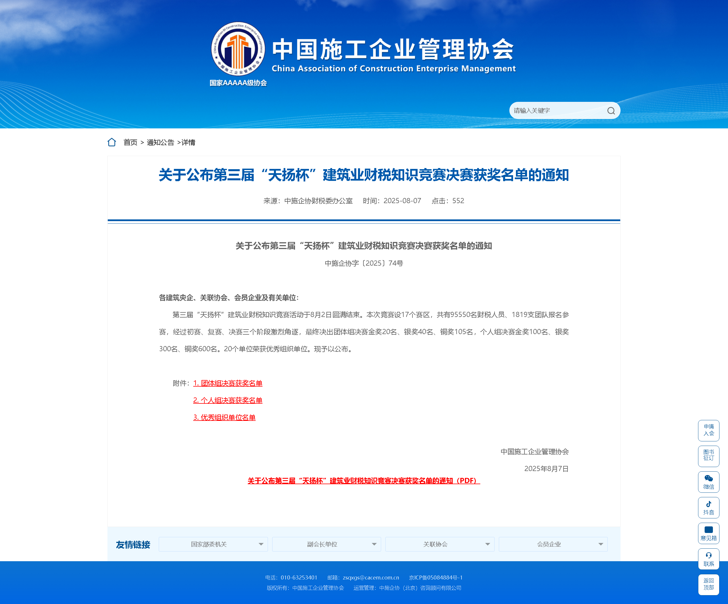 關(guān)于公布第三屆“天揚(yáng)杯”建筑業(yè)財(cái)稅知識(shí)競(jìng)賽決賽獲獎(jiǎng)名單的通知