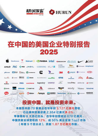 (2025年11月3日,上海)提供有質(zhì)量的榜單與調(diào)研的胡潤研究院今日發(fā)布《2025在中國的美國企業(yè)特別報告》(以下簡稱“報告”)。本報告旨在追蹤美國企業(yè)在中國市場的表現(xiàn)及其全球營收情況,以評估中國市場對美國企業(yè)的重要性及變化趨勢。這是胡潤研究院第二次發(fā)布美國企業(yè)專題報告。