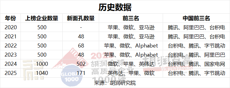 自2024年起,胡潤(rùn)研究院將全球最具價(jià)值公司榜單從500強(qiáng)擴(kuò)展至1000強(qiáng),并將國(guó)有企業(yè)納入其中。