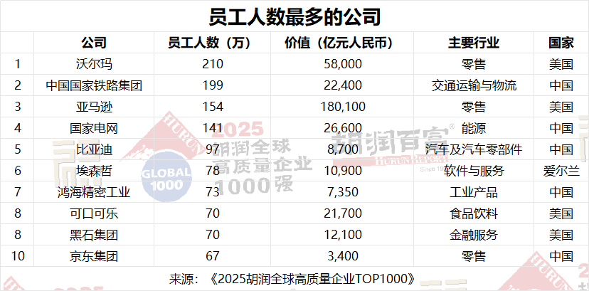 員工人數(shù)最多的公司