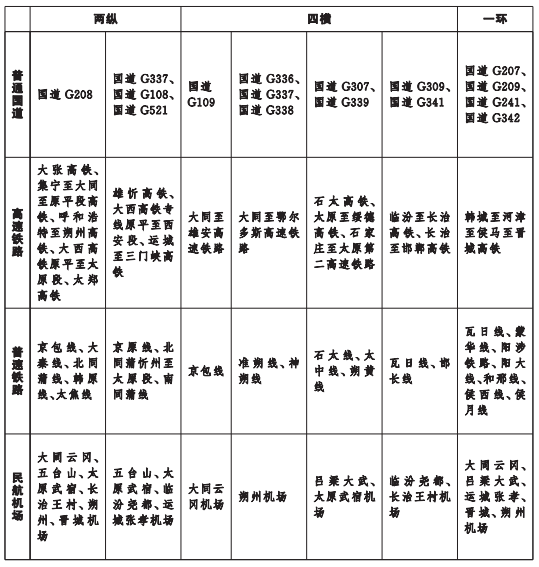 《綱要》提出,推進(jìn)綜合交通統(tǒng)籌融合發(fā)展。推進(jìn)各種運(yùn)輸方式統(tǒng)籌融合發(fā)展,統(tǒng)籌綜合交通運(yùn)輸通道規(guī)劃建設(shè),統(tǒng)籌綜合交通樞紐一體化規(guī)劃建設(shè),推動城市內(nèi)外交通有效銜接,推進(jìn)城市內(nèi)外交通設(shè)施互聯(lián)、票制互通、安檢互信、信息共享、支付兼容。推進(jìn)交通基礎(chǔ)設(shè)施網(wǎng)與運(yùn)輸服務(wù)網(wǎng)、信息網(wǎng)、能源網(wǎng)融合發(fā)展。推進(jìn)區(qū)域交通運(yùn)輸協(xié)調(diào)發(fā)展,推進(jìn)山西中部城市群交通運(yùn)輸一體化發(fā)展,統(tǒng)籌城鄉(xiāng)交通運(yùn)輸一體化發(fā)展。推進(jìn)交通與郵政快遞、現(xiàn)代物流、旅游、國防戰(zhàn)備以及其他相關(guān)產(chǎn)業(yè)融合發(fā)展。