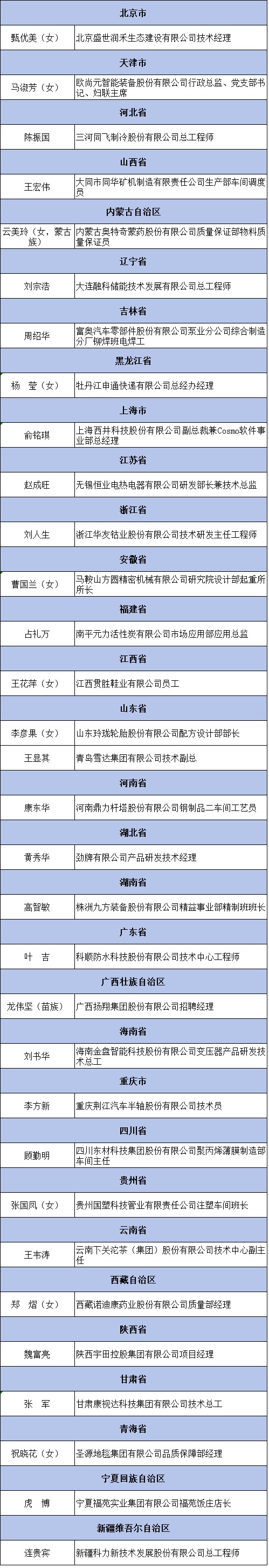“全國熱愛企業(yè)優(yōu)秀員工”名單