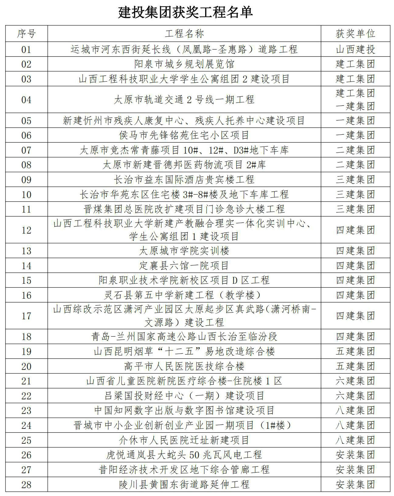 山西建投集團(tuán)承建的28項工程榮獲首屆山西省優(yōu)質(zhì)工程獎