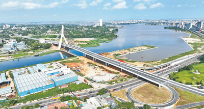 近年來,中國企業(yè)為提升非洲基礎(chǔ)設(shè)施水平、加速互聯(lián)互通和一體化進(jìn)程、促進(jìn)當(dāng)?shù)亟?jīng)濟(jì)社會發(fā)展和民生改善等作出了積極貢獻(xiàn)。圖為中國路橋工程有限責(zé)任公司承建的科特迪瓦阿比讓科科迪斜拉橋項目。 |
