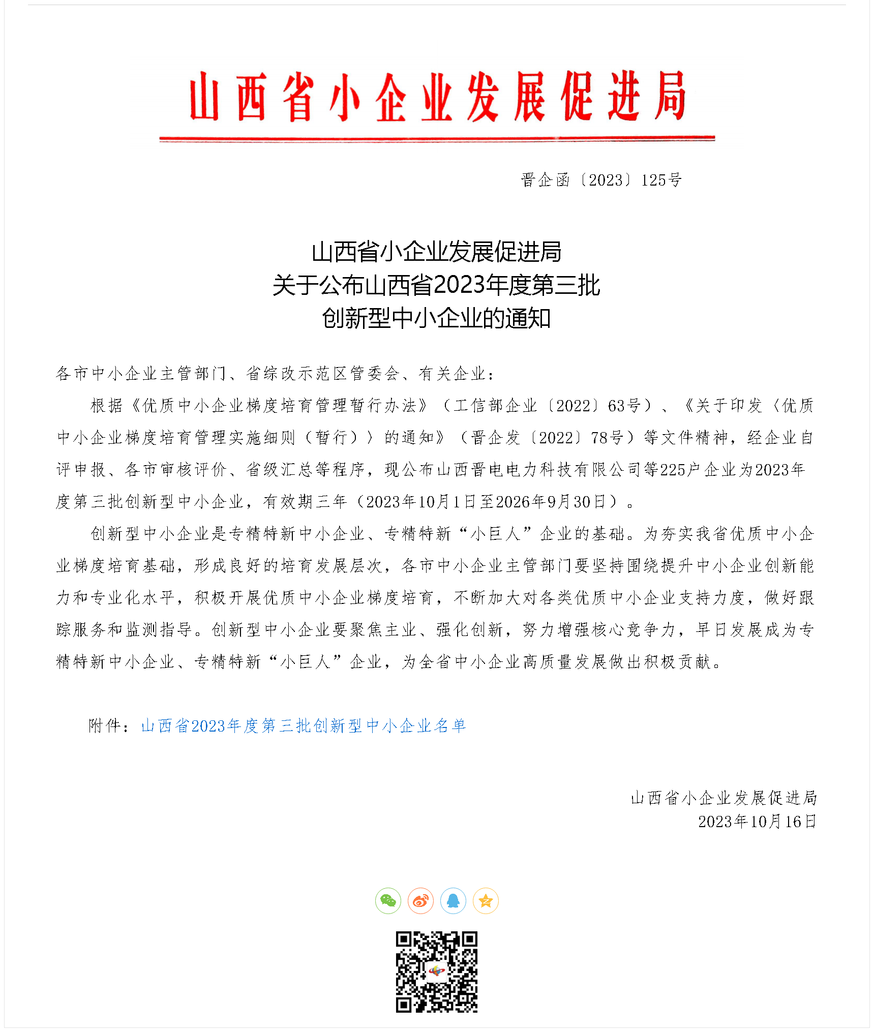 山西省2023年度第三批創(chuàng)新型中小企業(yè)名單
