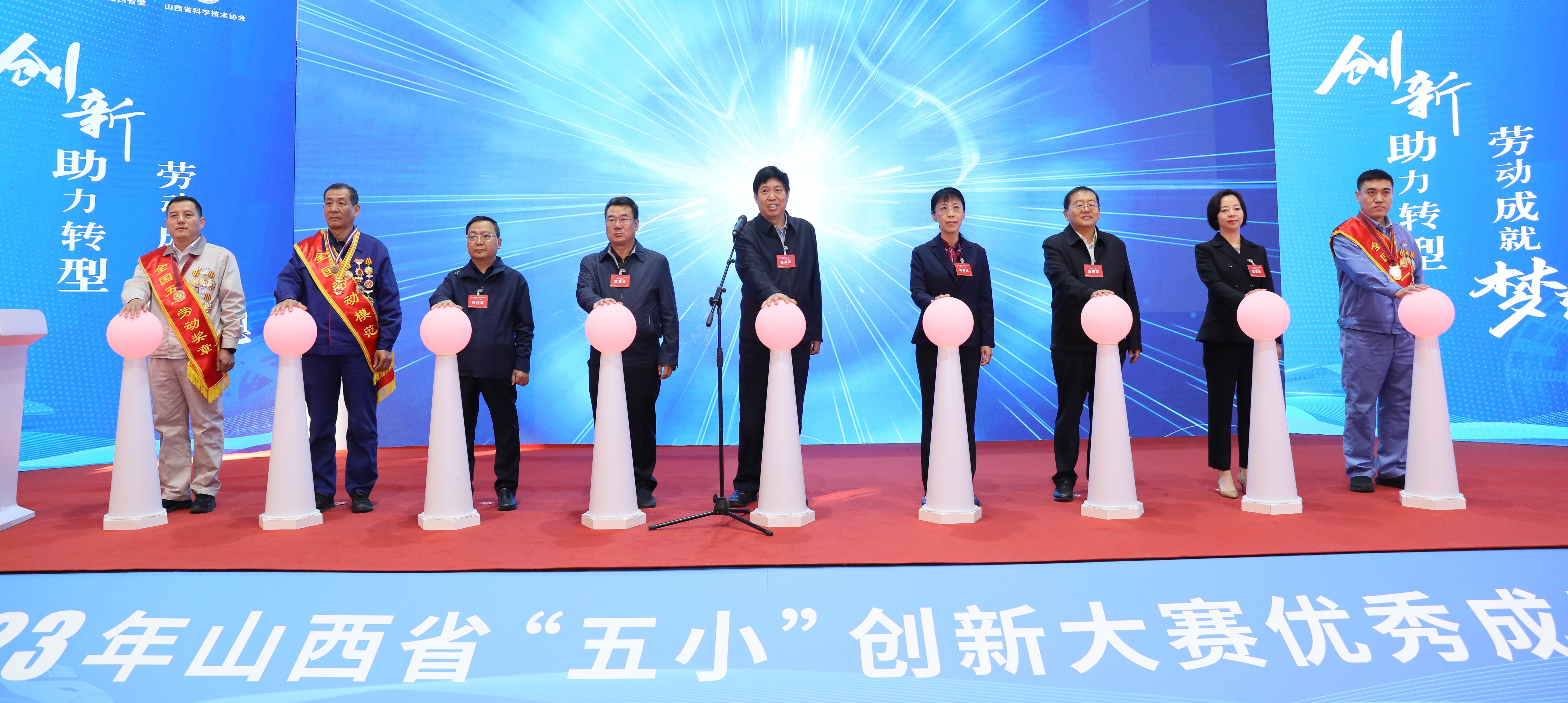 趙紅嚴(yán)代表省政府向成果展開幕表示祝賀。趙紅嚴(yán)強(qiáng)調(diào),全省各級工會(huì)、共青團(tuán)和科協(xié)要進(jìn)一步扛牢政治責(zé)任,充分發(fā)揮群團(tuán)組織優(yōu)勢,將“五小”創(chuàng)新大賽持續(xù)引向深入。要進(jìn)一步提升大賽質(zhì)量,推動(dòng)大賽內(nèi)容更加豐富、方式更加新穎、載體更加多元、群眾參與熱情更加高漲、成果推廣交流更加廣泛高效、成果轉(zhuǎn)化落地更加快速順暢,切實(shí)提升大賽的影響力和美譽(yù)度。要進(jìn)一步抓好平臺(tái)打造,加快推進(jìn)工匠學(xué)院、勞模創(chuàng)新工作室、“鄉(xiāng)村E站”等創(chuàng)新平臺(tái)建設(shè),著力打造特色鮮明、社會(huì)認(rèn)可的實(shí)踐陣地,實(shí)現(xiàn)生產(chǎn)實(shí)踐、創(chuàng)新創(chuàng)造、能力提升協(xié)同并進(jìn),讓廣大職工群眾的聰明才智充分涌流、創(chuàng)造活力競相迸發(fā),凝聚起推進(jìn)中國式現(xiàn)代化山西實(shí)踐的磅礴力量。要按照省委十二屆六次全會(huì)部署和剛剛召開的全省領(lǐng)導(dǎo)干部會(huì)議精神,在省委、省政府的堅(jiān)強(qiáng)領(lǐng)導(dǎo)下,把鼓勵(lì)支持創(chuàng)新放在更加突出的位置,進(jìn)一步激發(fā)全社會(huì)的創(chuàng)新熱情,一張藍(lán)圖繪到底,一年接著一年干,團(tuán)結(jié)引領(lǐng)廣大職工群眾為我省加快高質(zhì)量發(fā)展不斷作出新貢獻(xiàn)、展現(xiàn)新作為。