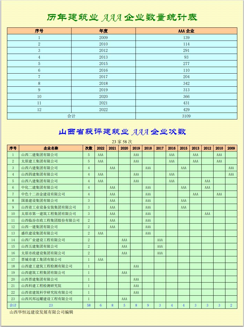 2023年度建筑業(yè)AAA級(jí)信用企業(yè)名單