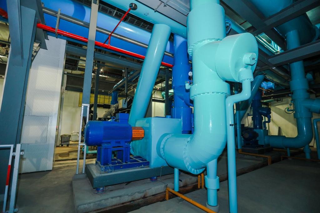 這是在江蘇省南京市拍攝的江水源熱泵供能系統(tǒng)內(nèi)部管道(2023年12月1日攝)。新華社發(fā)