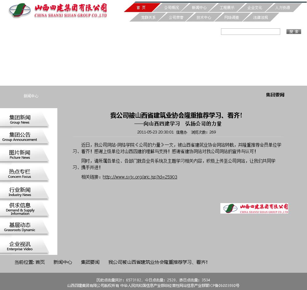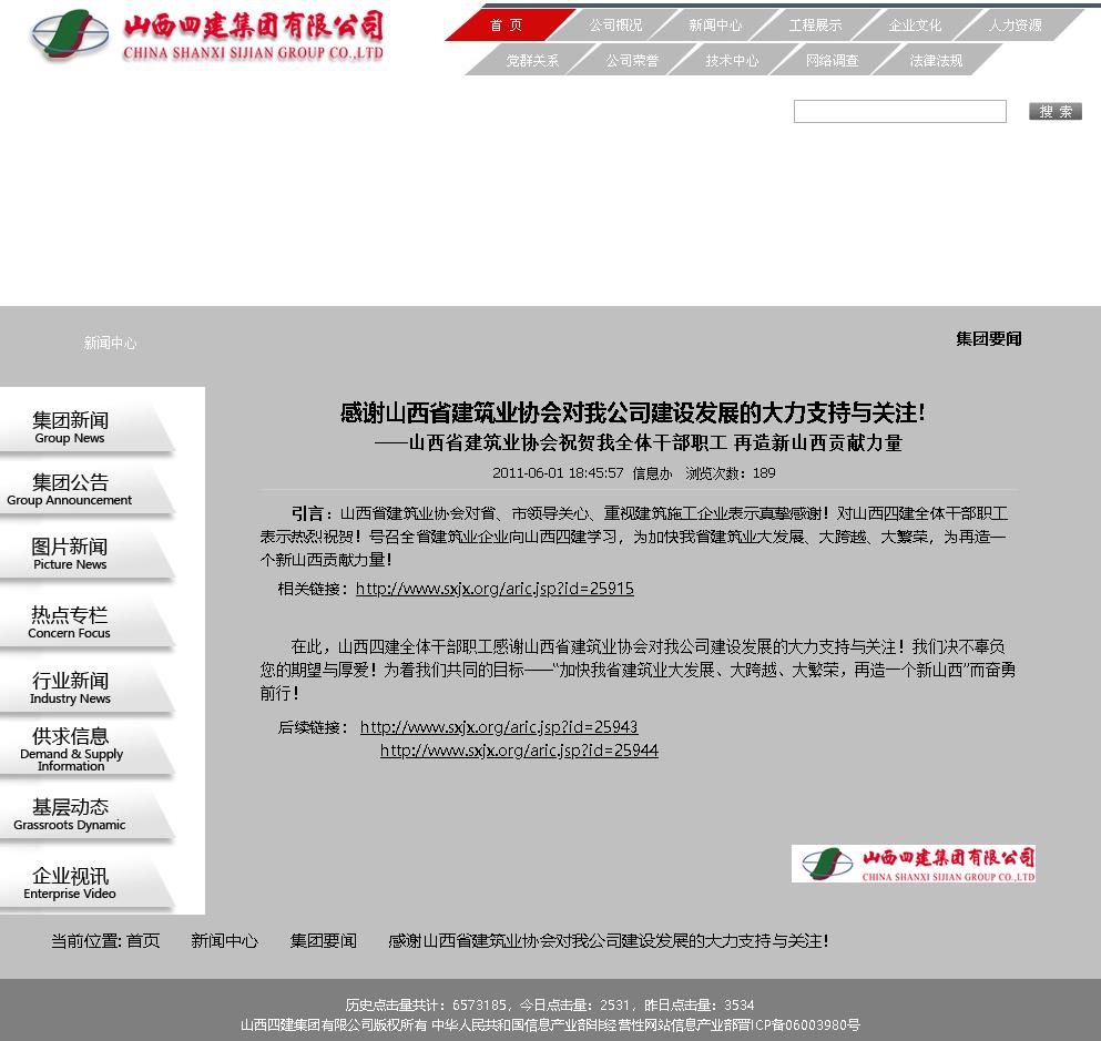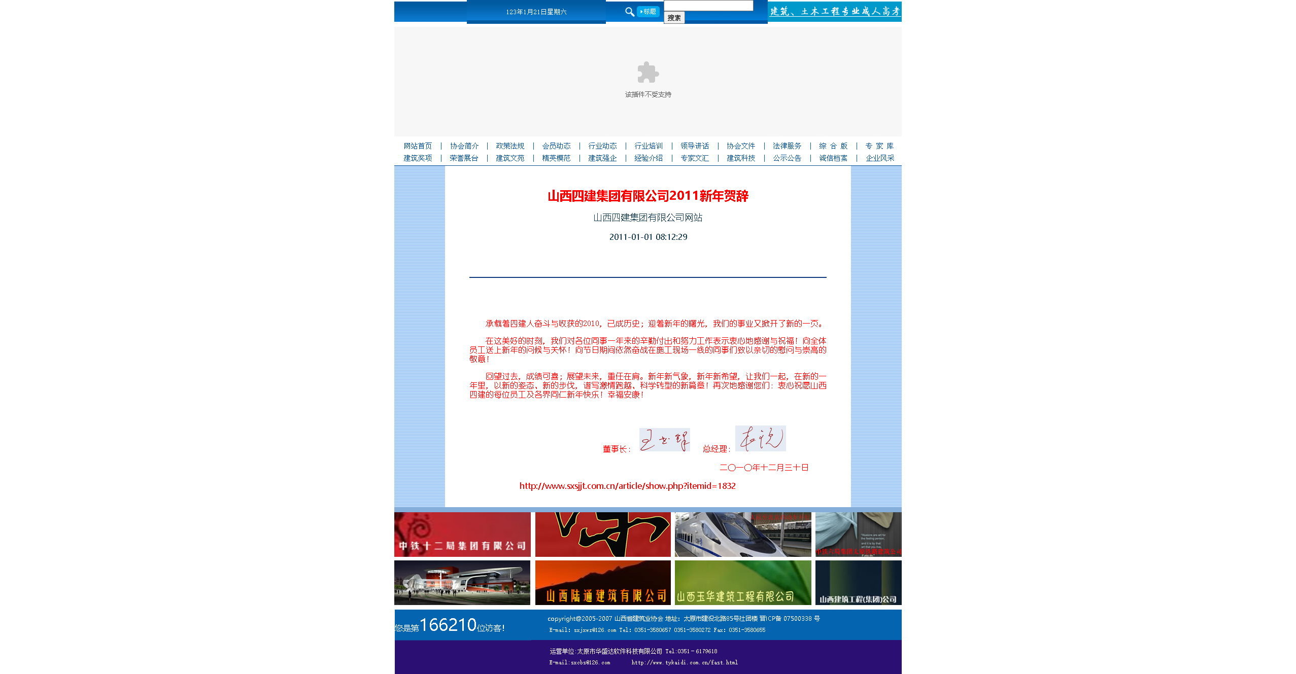 山西四建集團(tuán)有限公司作為山西建筑業(yè)行業(yè)標(biāo)桿,關(guān)注他們是我?guī)资甑牧?xí)慣,一直把這個企業(yè)的靈魂文化看成是行業(yè)的風(fēng)向標(biāo)和榜樣。尤其特別關(guān)注他們每年的新春賀詞,我在建協(xié)負(fù)責(zé)網(wǎng)站時,多次表揚(yáng)他們,鼓勵他們,支持他們!你進(jìn)他們的網(wǎng)站看看,現(xiàn)在怎么樣,存在什么問題,如何解決?你有什么感悟,有什么高明的真知灼見呢?