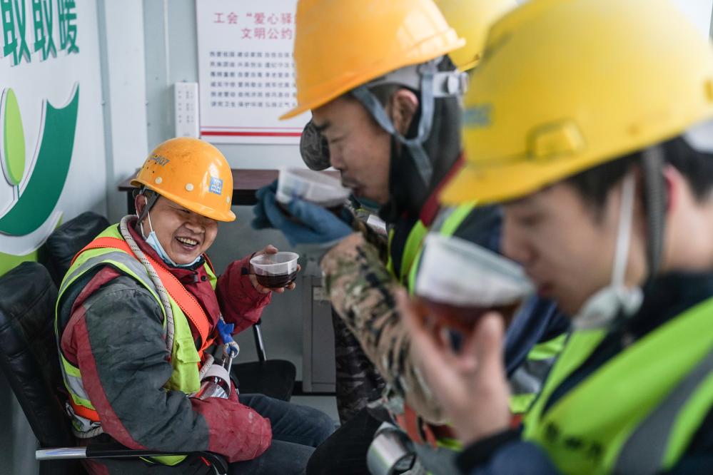 12月12日,在位于北京市海淀區(qū)的一處工地上,工人在喝姜茶驅(qū)寒。新華社記者 彭子洋 攝