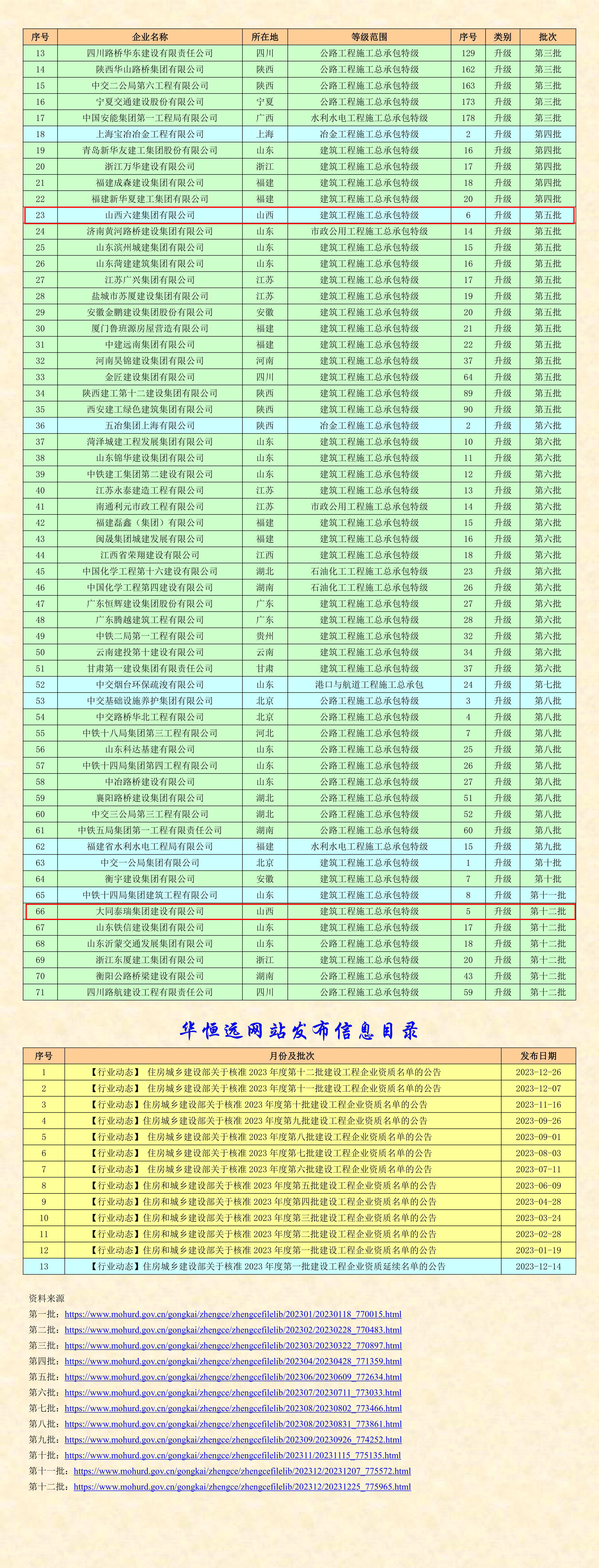 根據(jù)《中華人民共和國建筑法》及有關(guān)建設(shè)工程企業(yè)資質(zhì)管理規(guī)定,現(xiàn)將我部核準(zhǔn)的工程勘察資質(zhì)、工程設(shè)計資質(zhì)、建筑業(yè)企業(yè)資質(zhì)、工程監(jiān)理企業(yè)資質(zhì)的單位名單(2023年度第十二批)予以公布。未予核準(zhǔn)的單位可登錄住房城鄉(xiāng)建設(shè)部政務(wù)服務(wù)門戶,點擊“申請事項辦理進(jìn)度查詢(受理發(fā)證信息查詢)”欄目查詢原因。