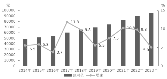 2023年山西省城鎮(zhèn)非私營單位就業(yè)人員年平均工資95025元