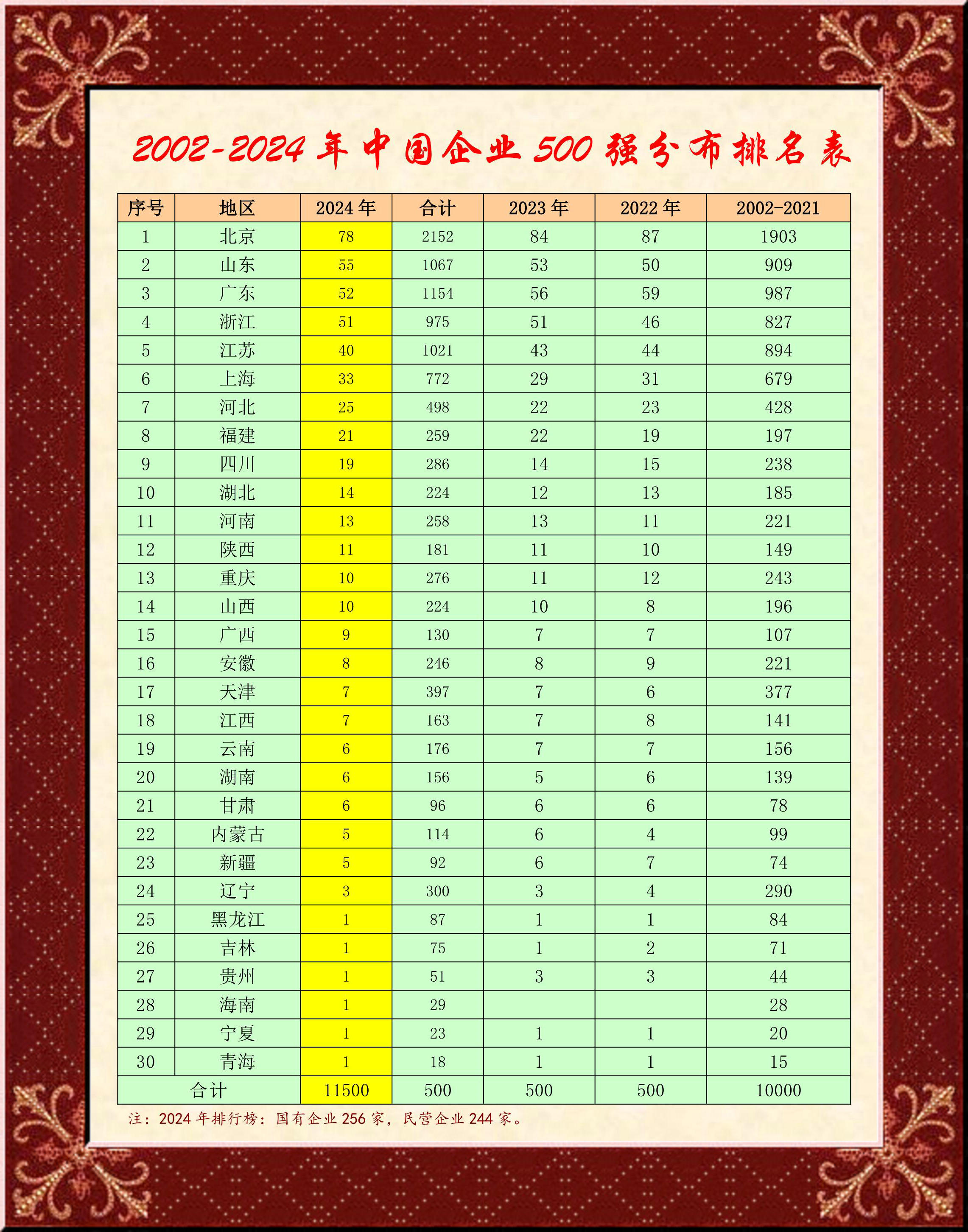 2002-2024年中國企業(yè)500強(qiáng)前10名