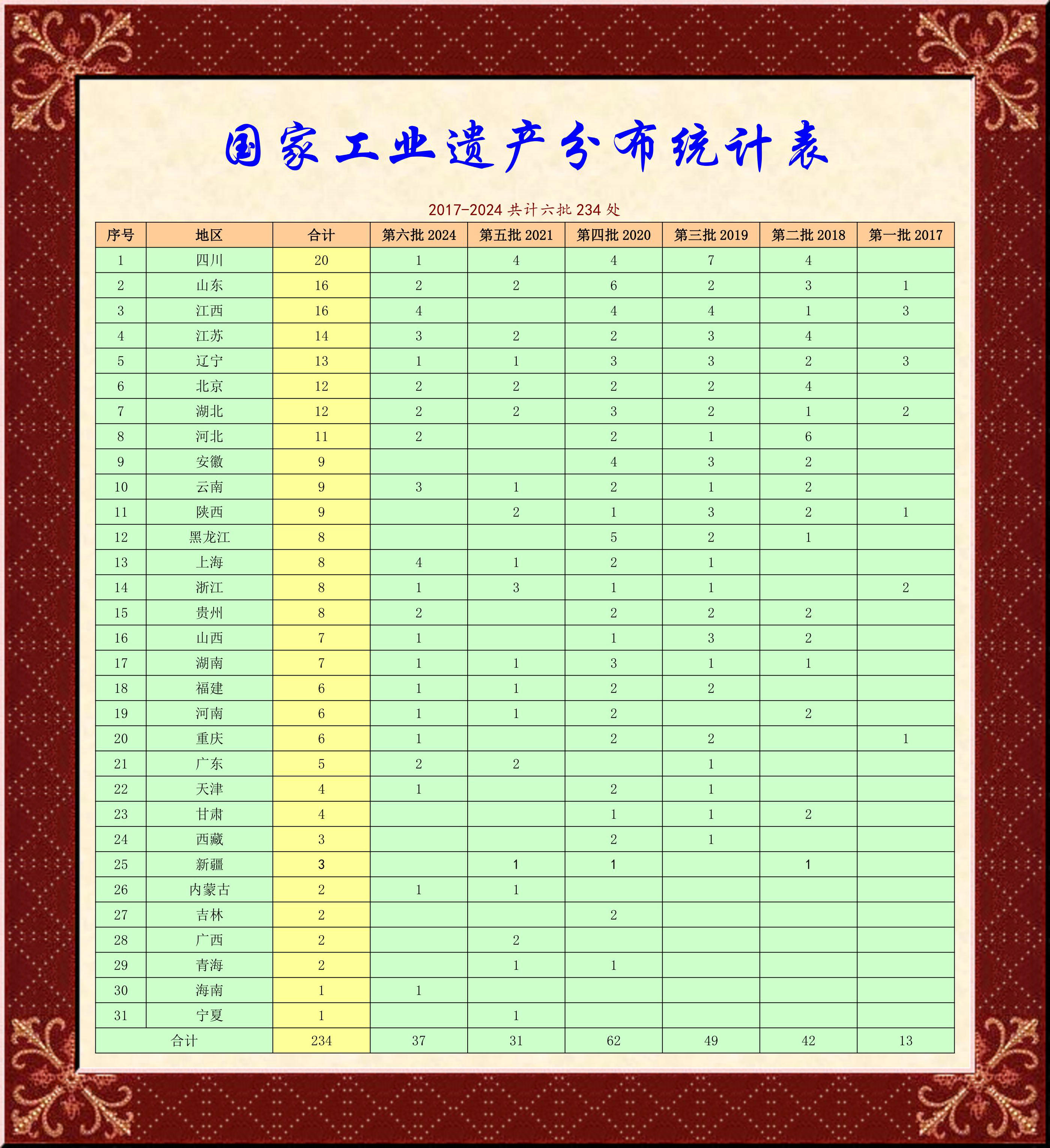 1.第六批國家工業(yè)遺產名單 2.通過復核的第一、二批國家工業(yè)遺產名單 3.需要整改項目名單