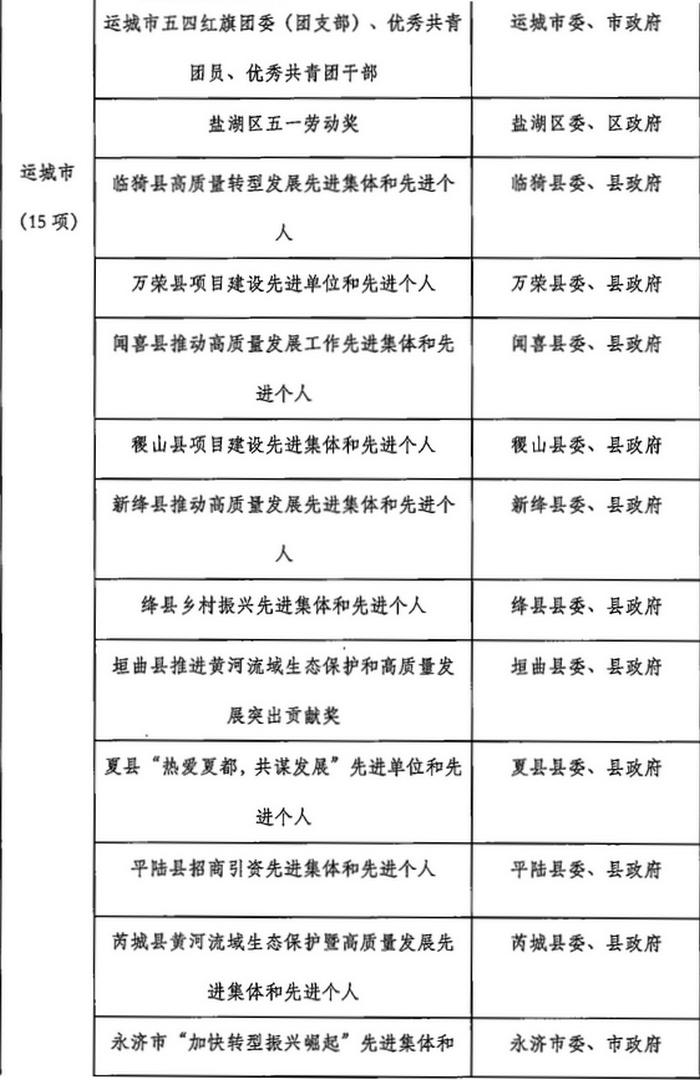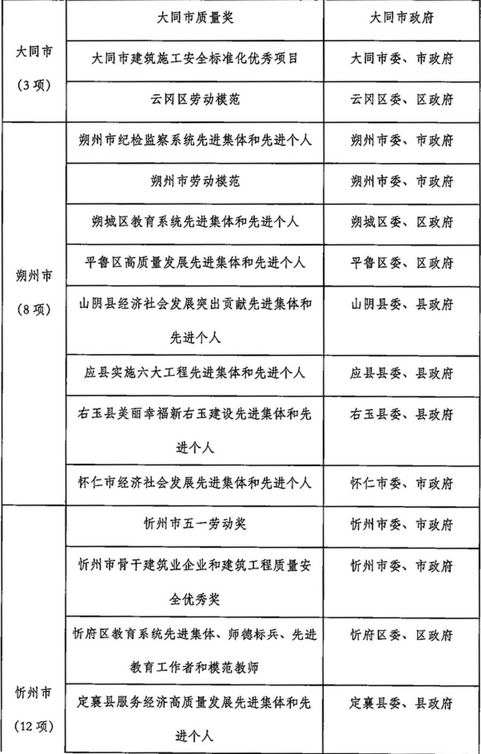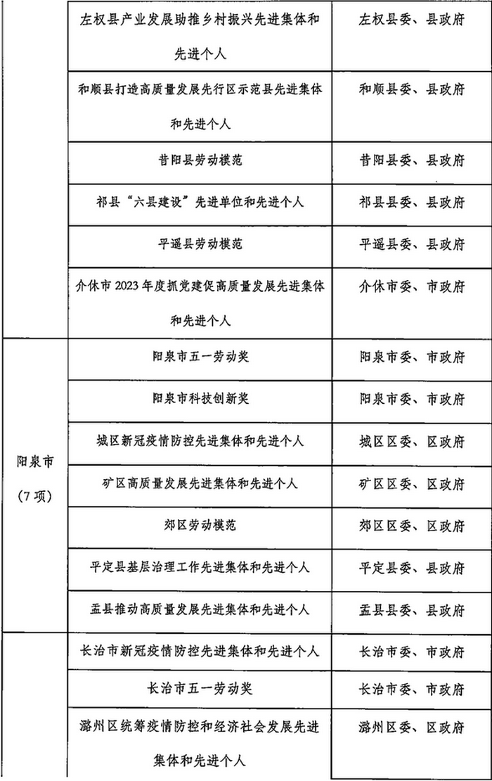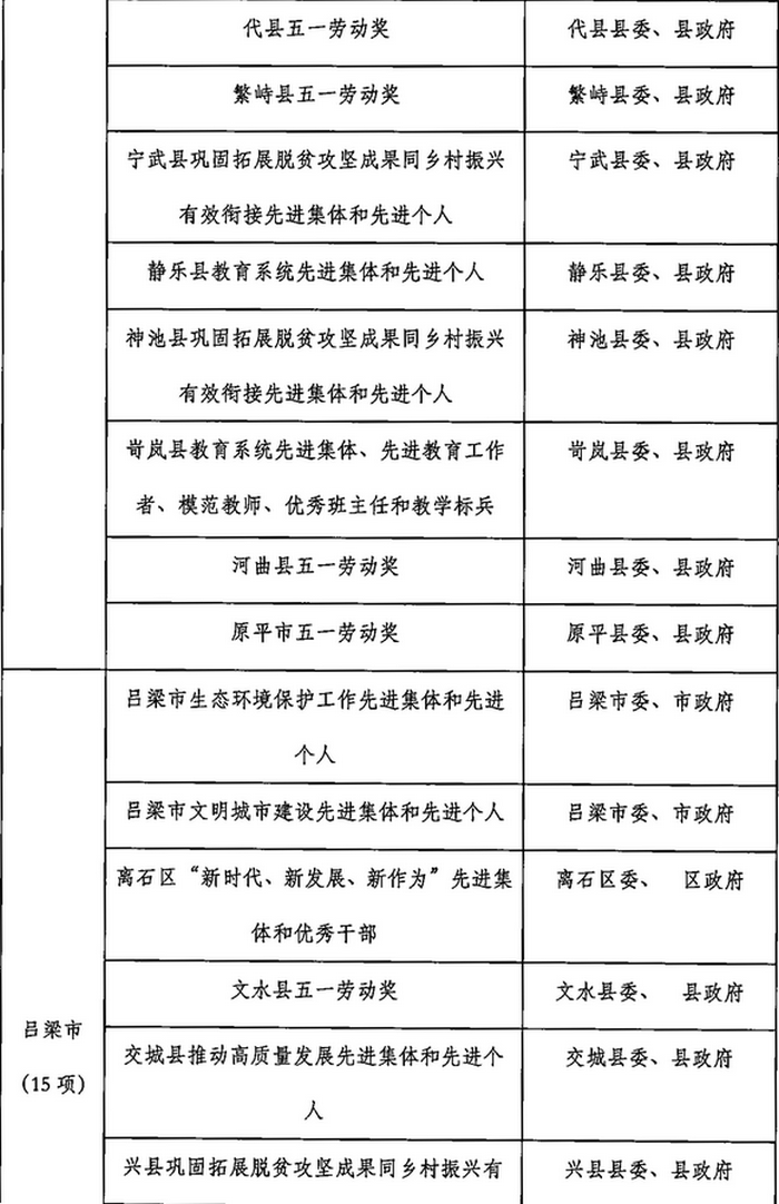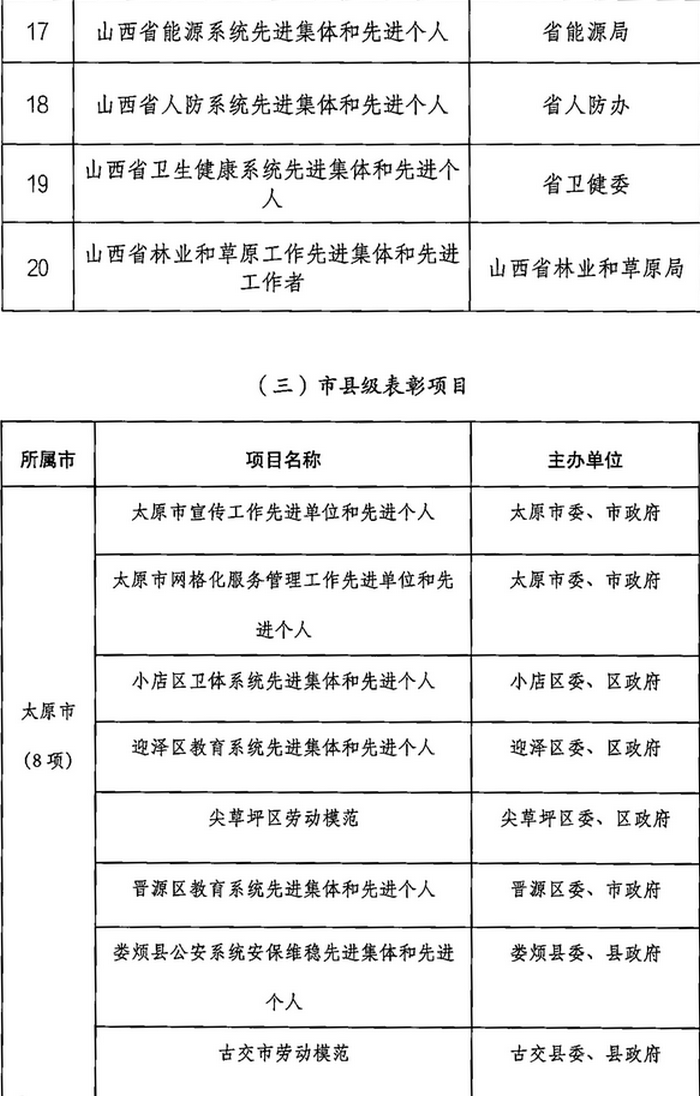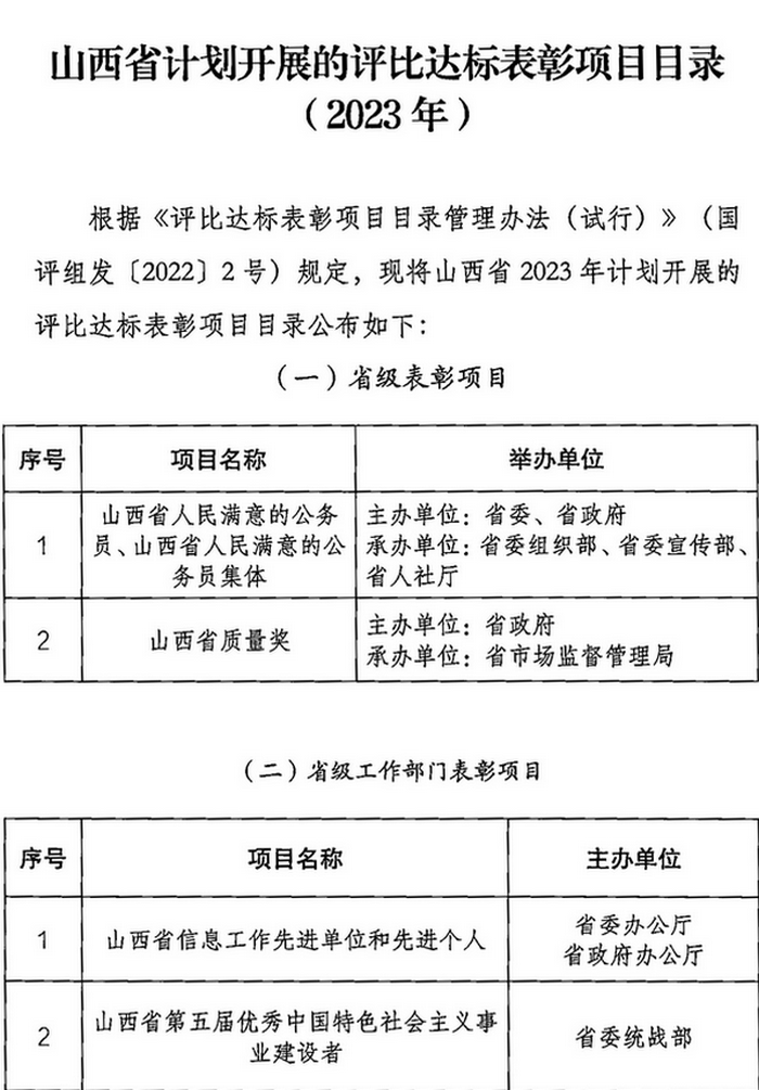 山西省2023年計劃開展的評比達標表彰項目目錄