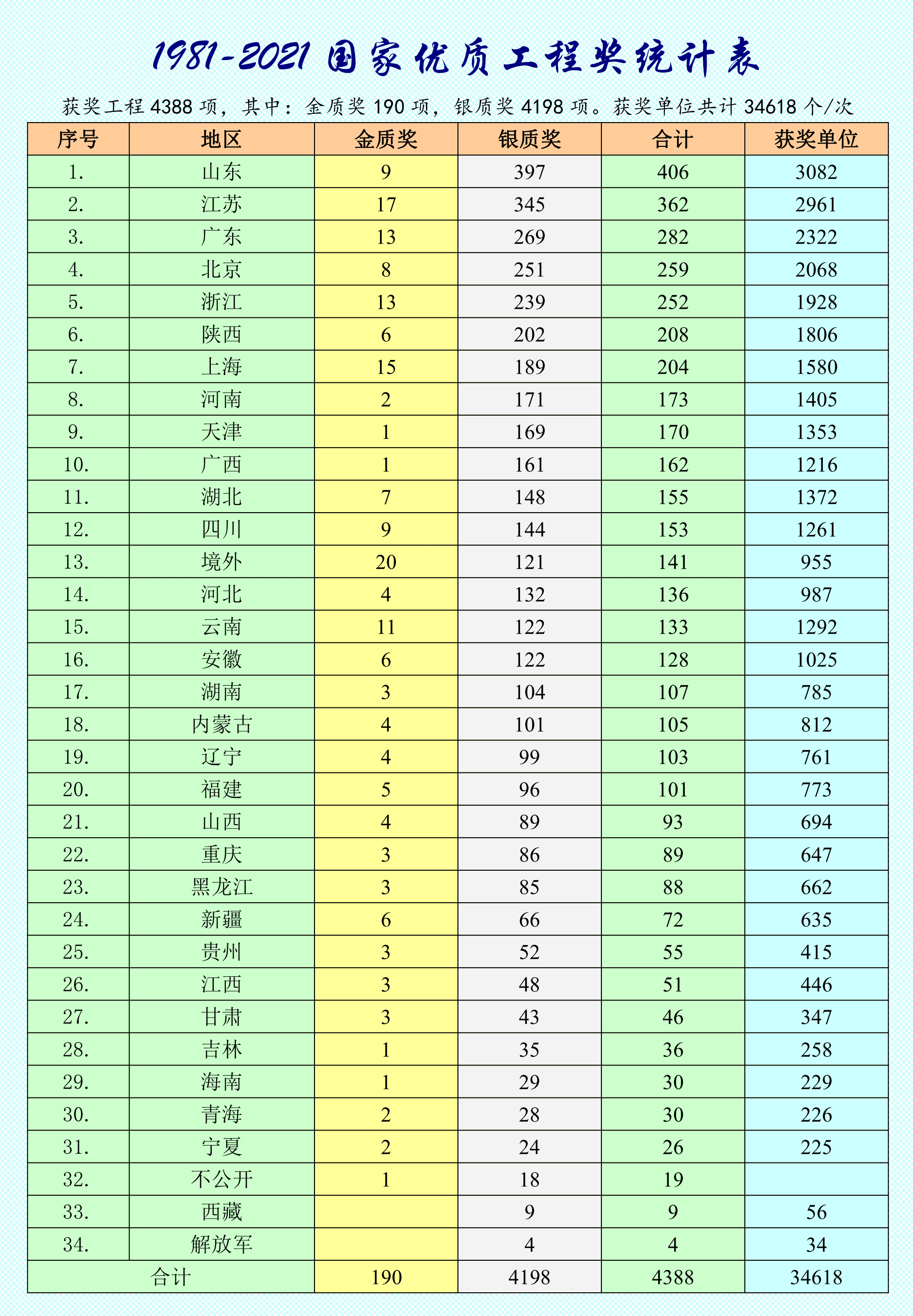 【行業(yè)資料】1981-2021國家優(yōu)質(zhì)工程獎總榜單