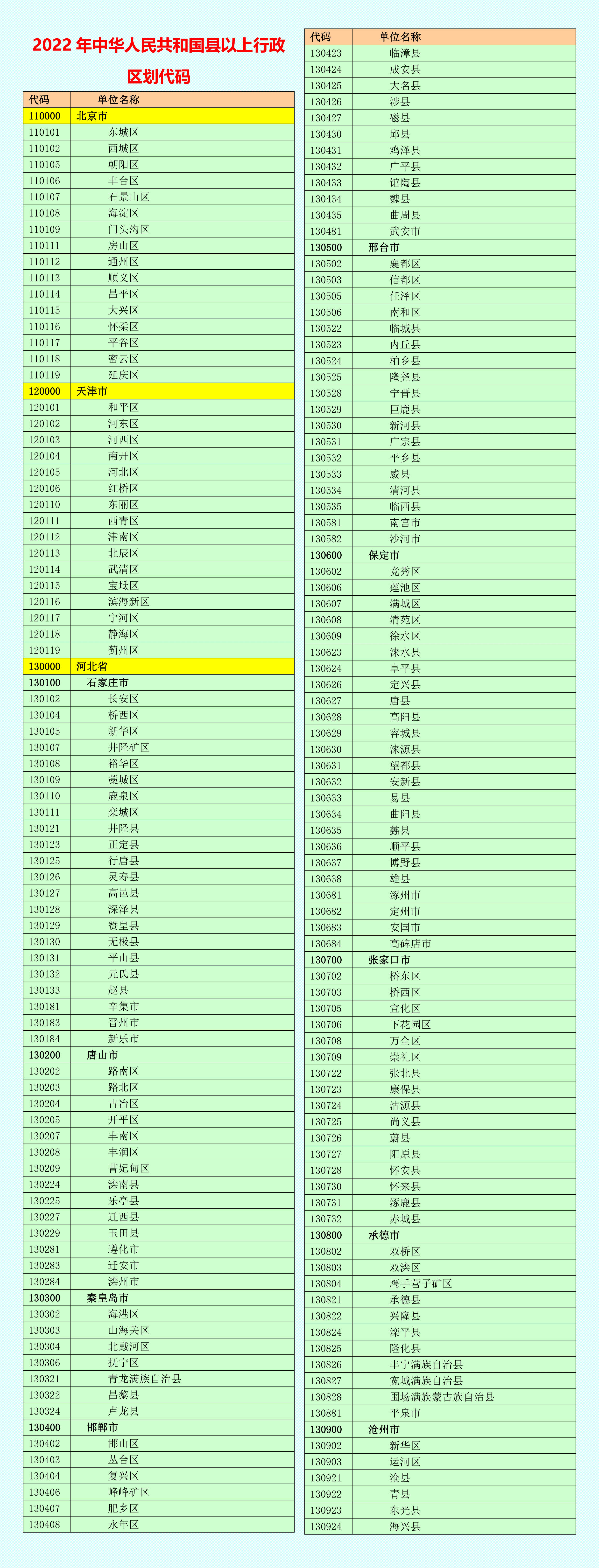 2022年中華人民共和國行政區(qū)劃代碼 | 2023-04-23 | |||||||