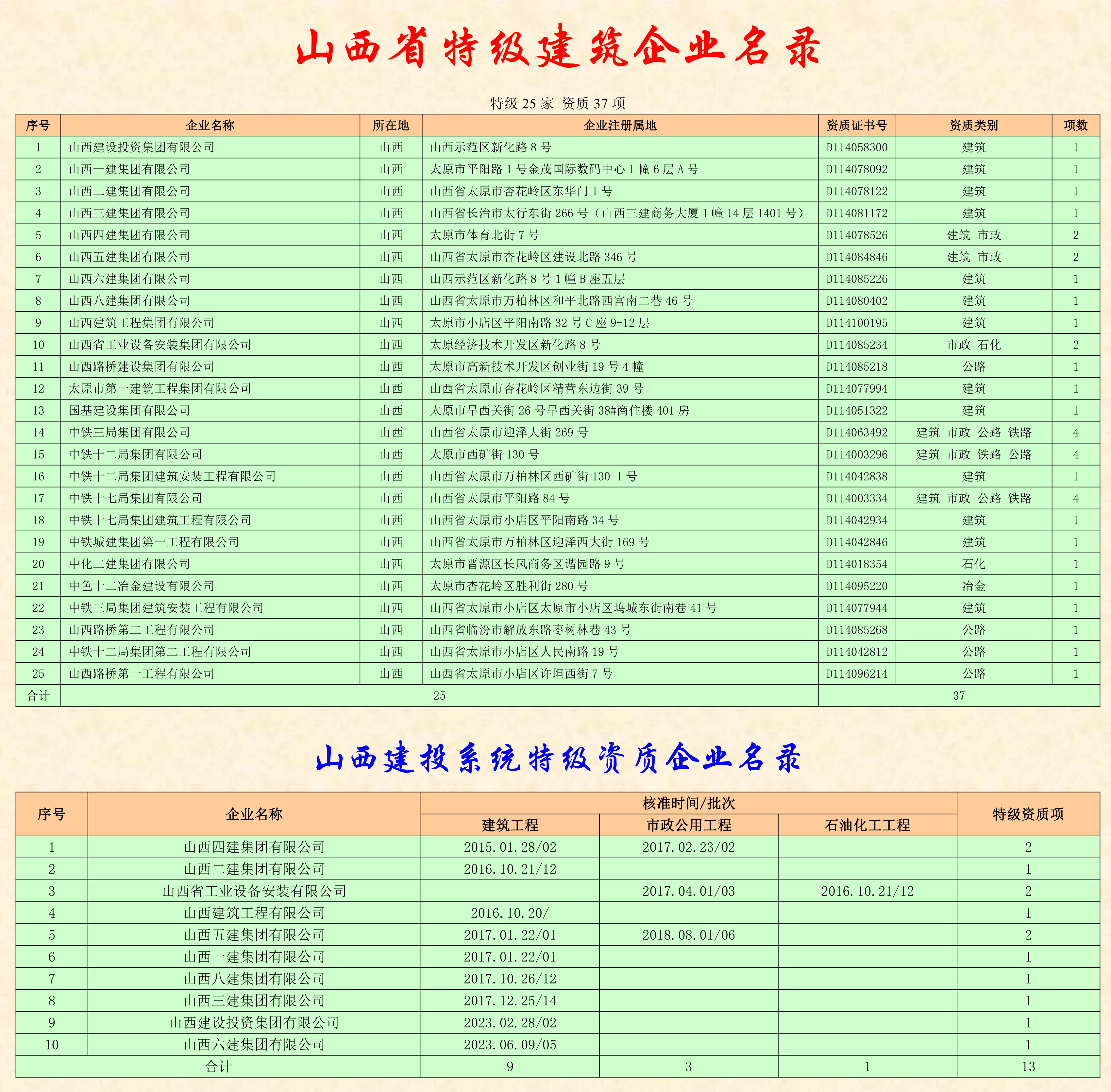 【行業(yè)資料】山西特級(jí)建筑企業(yè)名錄