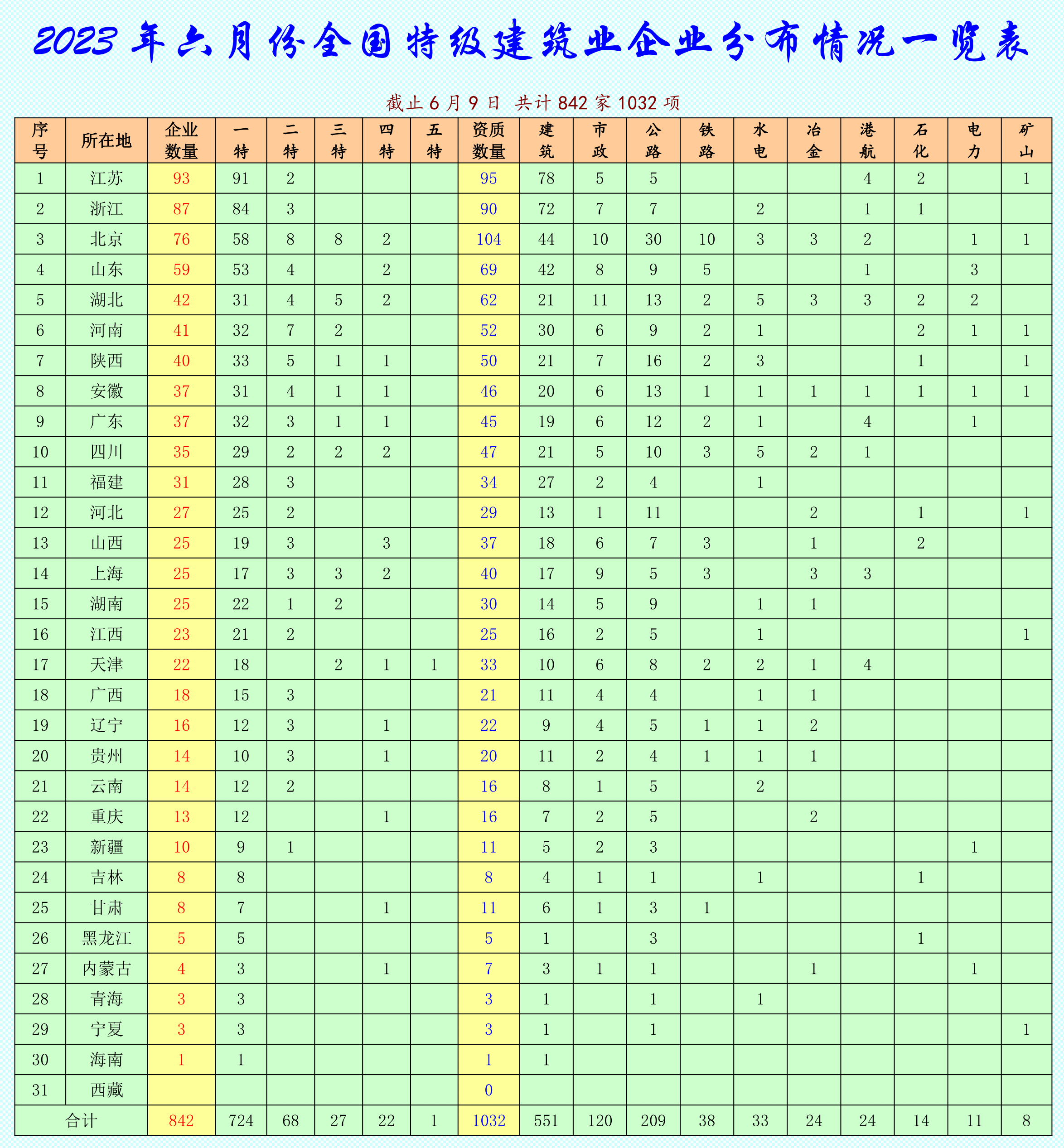 【學(xué)習(xí)園地】2023年四月份全國(guó)特級(jí)資質(zhì)建筑業(yè)企業(yè)名單829家1019項(xiàng)