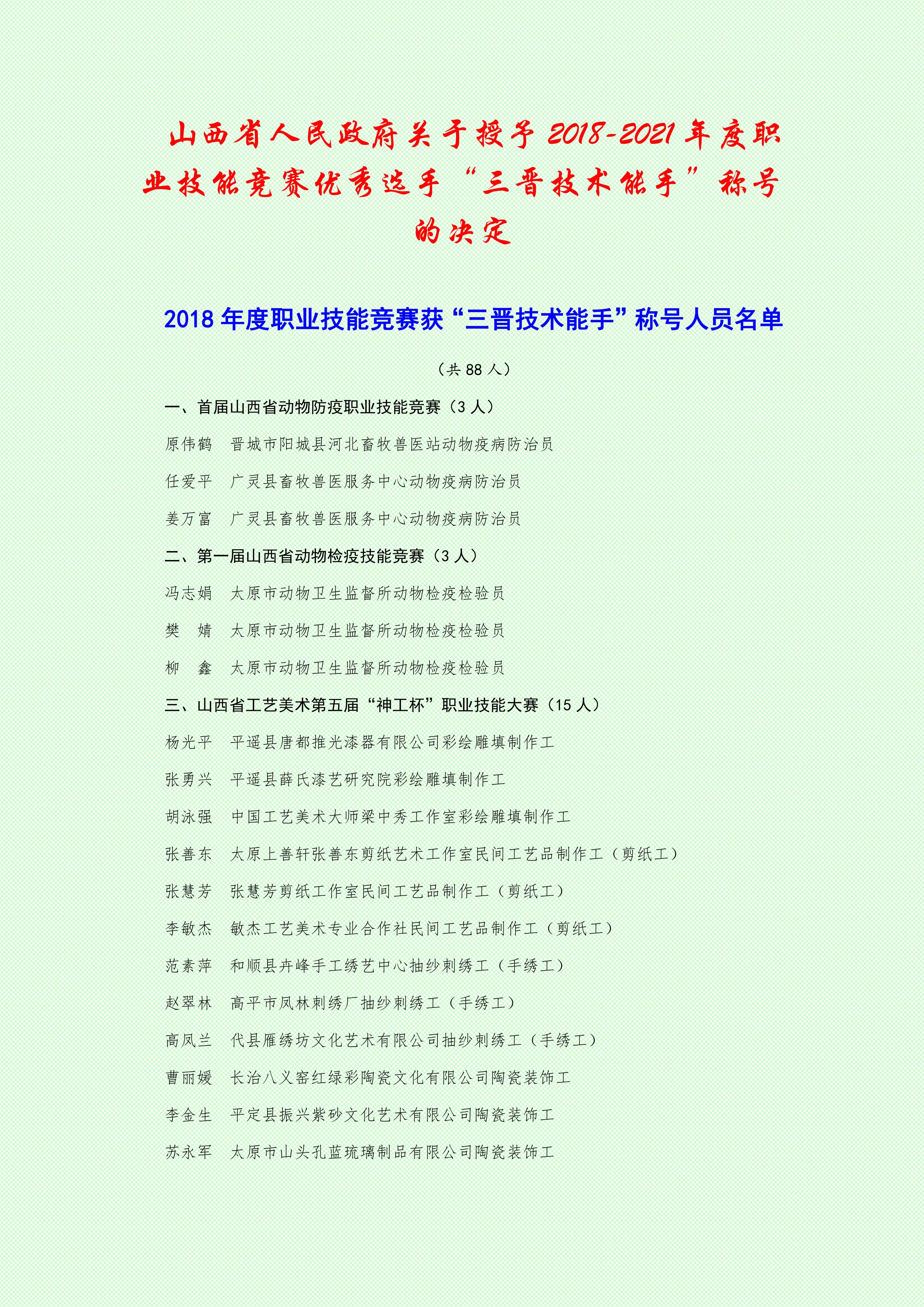 2018-2021山西省建筑業(yè)企業(yè)獲職業(yè)技能競(jìng)賽“三晉技術(shù)能手”稱號(hào)名單