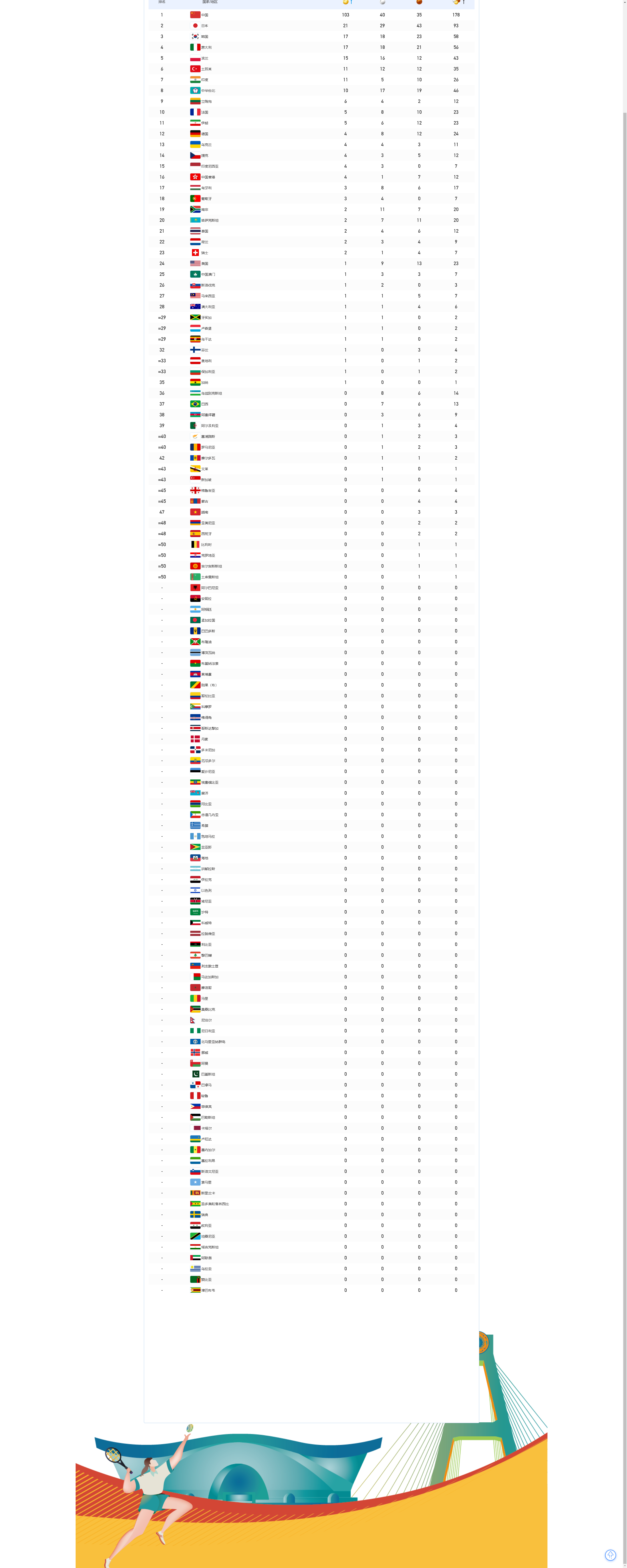 成都第31屆世界大學(xué)生夏季運(yùn)動(dòng)會(huì)獎(jiǎng)牌榜