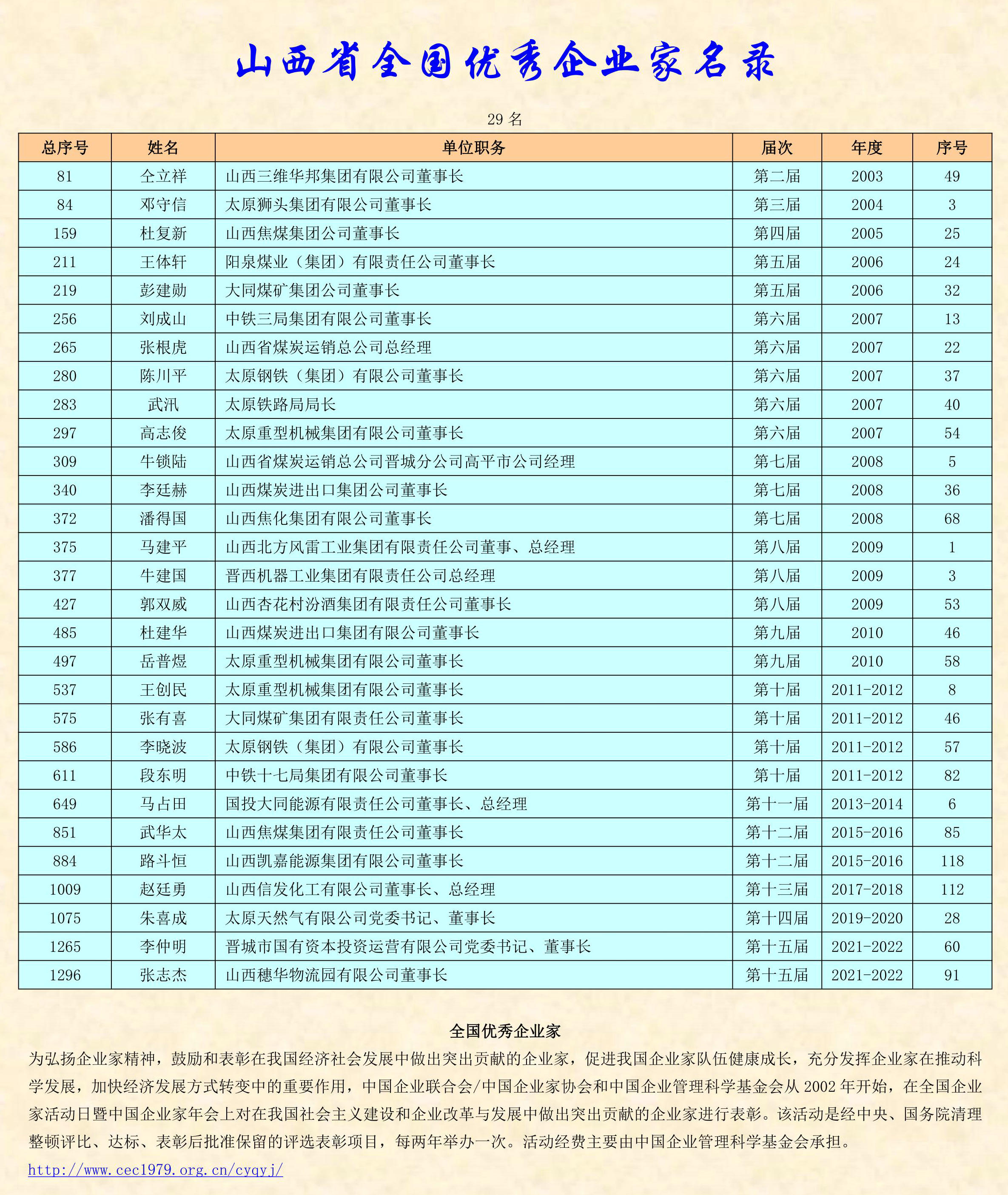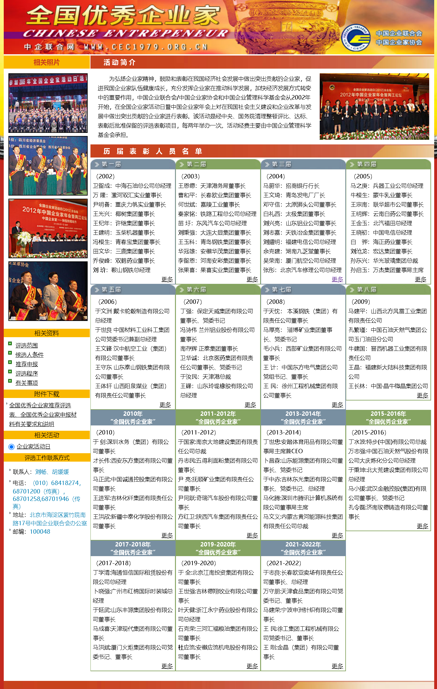 歷屆全國(guó)優(yōu)秀企業(yè)家名錄